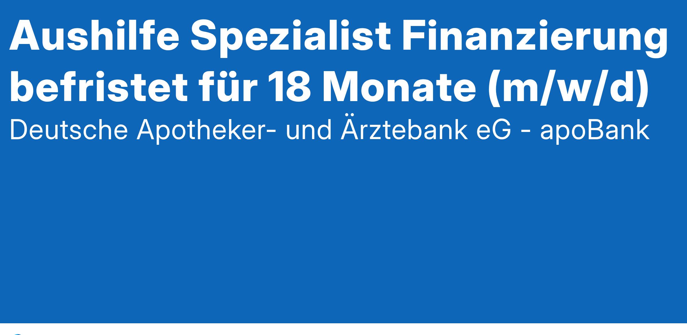Aushilfe Spezialist Finanzierung befristet für 18 Monate (m/w/d)