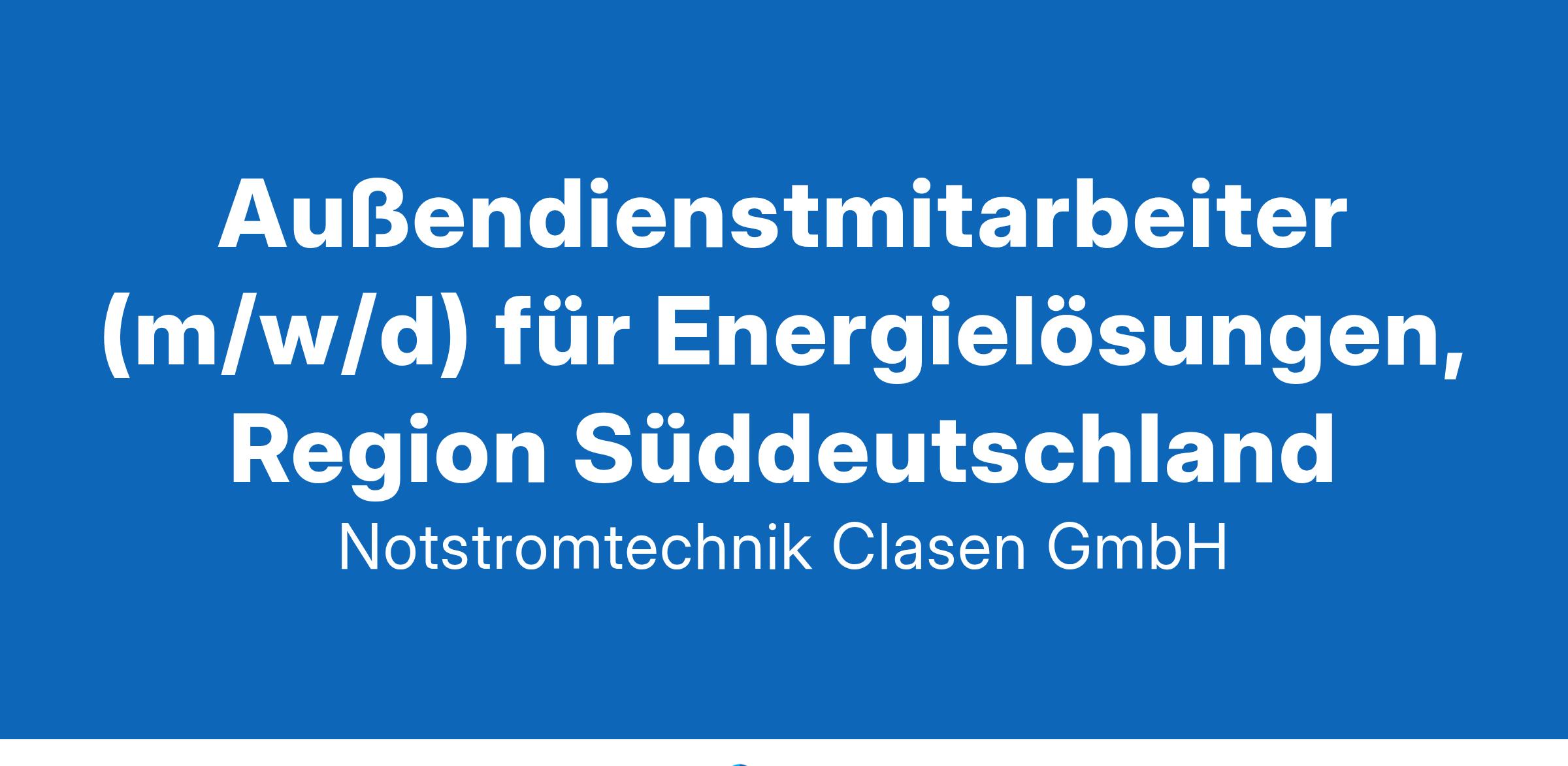 Vertriebsmitarbeiter (m/w/d) im Außendienst, Region SüddeutschlandOhne Strom geht nichts. Wir rüsten Unternehmen sicher mit Notstrom aus, damit sie sorgenfrei und unabhängig wirtschaften können! Möchten Sie ein Teil unseres Teams werden? Es erwartet Sie ein abwechslungsreicher Arbeitsplatz in einem weiterhin stark wachsenden Markt mit großen Zukunftsperspektiven. Zur Verstärkung unserer Abteilung Servicevertrieb in der Niederlassung Frankfurt am Main suchen wir schnellstmöglich Vertriebsmitarbeiter (m/w/d) im Außendienst, Region SüddeutschlandIhre Aufgaben Akquise von Neukunden im Bereich Ersatzgeschäft für Batterietausch und USV-Anlagentausch Betreuung und Pflege von Bestandskunden im Bereich Ersatzgeschäft Eigenständige Angebotserstellung und Kalkulation in unserem ERP-System Nachhaltung, Nachverfolgung von Angeboten -und listen und des Vertriebsdashboards im CRM-System Aufträge im Ersatzgeschäft an die Auftragsbearbeitung übergeben und bis zur Abnahme zur Sicherstellung der Kundenzufriedenheit begleiten Regelmäßige Aktualisierung der Forecastlisten zur Vertriebsplanung Ihr Profil Abgeschlossene technische Ausbildung, idealerweise im Elektrobereich oder eine vergleichbare Ausbildung (z.B. kaufmännische Ausbildung mit ausgeprägtem Interesse zur Elektrotechnik) Mehrjährige Berufserfahrung im Vertrieb, idealerweise von technischen Produkten Hohes Durchsetzungsvermögen, strategisches Denken und sehr gute Kommunikationsfähigkeit Sehr gute Deutschkenntnisse in Wort und Schrift, Englischkenntnisse wünschenswert Sicherer Umgang mit Office 365 Leidenschaft, Lösungsorientierung und Lernbereitschaft zeichnen Sie aus Sie haben Spaß am Informationsaustausch, arbeiten gerne in klaren Strukturen und haben Freude daran, unseren Kunden jeden Tag etwas Gutes zu tun Wir bieten Attraktive Vergütung Zielgerechte und fundierte Einarbeitung Fachspezifische sowie persönliche Fortbildungs- und Entwicklungsmöglichkeiten Volle Übernahme von VL-Leistungen Betriebliche Altersvorsorge, Berufsunfähigkeit, betriebliche Krankenversicherung Flexible Arbeitszeiten und 2 Tage Mobile Working/Woche Job-Rad Leasing, Urban Sports Club und weitere Benefits Modernes IT-Equipment Dienstfahrzeug mit 1%-Regelung KontaktDas passt? Wir sind neugierig auf Sie und freuen uns auf Ihre Bewerbung an E-Mail: bewerbung-servicevertrieb@ntc-gmbh.com Notstromtechnik-Clasen GmbH Kurt-Fischer-Str. 39 | 22926 Ahrensburg Tel: 04102 2102-0 | www.ntc-gmbh.com