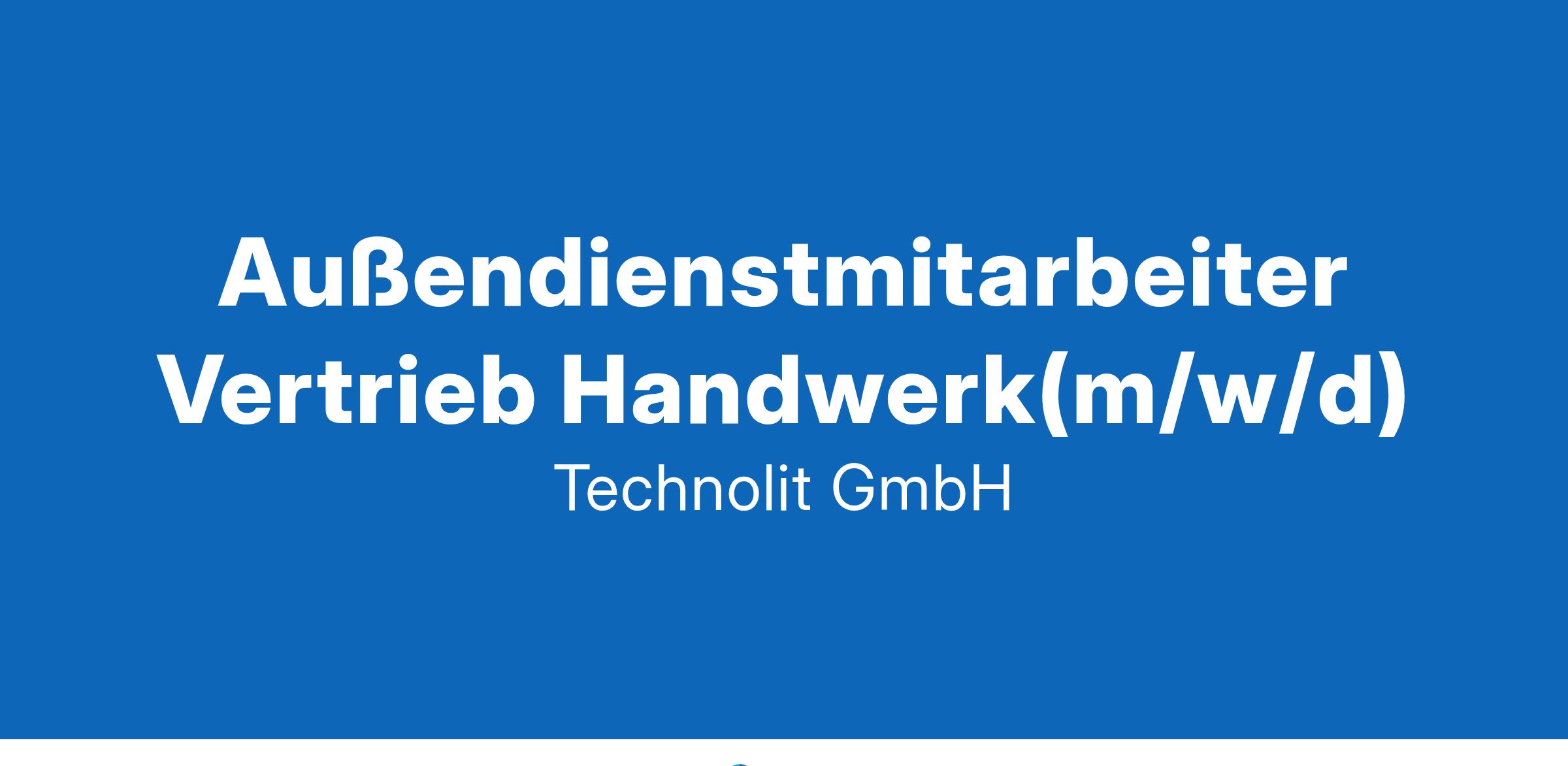 Außendienstmitarbeiter Vertrieb Handwerk(m/w/d)Das bieten wir Ihnen:Erfolgsorientiertes Gehaltsmodell, mit ungedeckelter Provision, Prämien und SpesenLangfristige Garantieabsicherung aus 70% des durchschnittlichen VorjahresgehaltsFirmenwagen inkl. Privatnutzung, Smartphone, Tablet und VorführmaterialVerkaufsgebiet in Wohnortnähe (Umkreis 80km - 100km)Festanstellung im Angestellten-VerhältnisUnterstützendes Trainingsprogramm in den ersten Monaten (auch für Quereinsteiger), darauf aufbauend eine individuelle Entwicklungs- und Karrierelaufbahn im AußendienstDas ist Ihre Aufgabe:Verkauf von hochwertigen Markenprodukten und Werkstattbedarf im AußendienstBeratung zu individuellen Dienstleistungen und ServicesWeiterentwicklung eines eigenen VerkaufsgebietesPflege und Ausbau bestehender KundenbeziehungenWichtigstes Bindeglied zwischen unseren Kunden (B2B) und TechnolitDas bringen Sie mit:Führerschein Klasse BAbgeschlossene Ausbildung oder mehrjährige Berufserfahrung, vorzugsweise im gewerblichen/ technischen BereichAuthentische, kommunikative und begeisternde PersönlichkeitVerhandlungsgeschick und selbstständige Arbeitsweise für Ihren vertrieblichen ErfolgZuverlässigkeit, Lernbereitschaft und hohe EigenmotivationTECHNOLIT GmbH ist ein führender, europaweit tätiger Direktvertreiber für Profi-Anwender im Handwerk, der Bau- und Kfz-Branche, dem Agrarsektor sowie in Industrie und Handel.Über uns – Die TECHNOLIT GmbH stellt sich vorEine gleichbleibend hohe Produktqualität und die flexible, zuverlässige Belieferung unserer Kunden sind weitere Säulen unseres langjährigen Erfolges. Unser Sortiment umfasst ca. Artikel, die in einem mit spezieller Logistik ausgestatteten Hochregallager bevorratet sind. Durch innovative Systeme können die Artikel jederzeit abgerufen werden.Bewerben bei TECHNOLITWie sieht der Bewerbungsprozess aus?Bewerbungseingang: Mit der Übermittlung Ihrer Bewerbungsunterlagen haben Sie bereits den ersten Schritt gemacht und der Bewerbungsprozess hat begonnen. Sie erhalten von uns eine Eingangsbestätigung Ihrer Unterlagen.