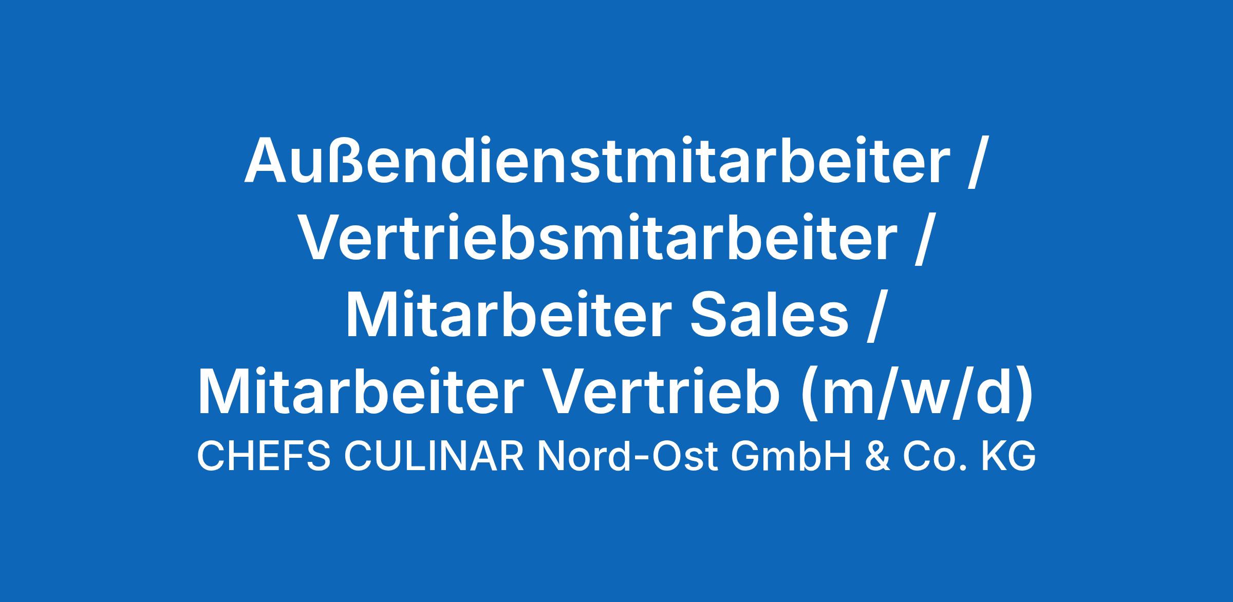 Als bundesweit führender Zustellgroßhändler für Großverbraucher in der Gastronomie und Hotellerie sowie von Krankenhäusern, Senioreneinrichtungen und Betriebskantinen entwickeln wir uns stetig weiter. Daher haben wir in Ludwigsfelde unsere neue Niederlassung eröffnet. In unseren hochmodernen Büroräumen mit eigener Gastronomie schaffen wir Platz für neue Ideen, damit wir auch in Zukunft nicht nur in Deutschland, sondern auch im benachbarten Ausland beständig weiterwachsen. Werde Du ein Teil von CHEFS CULINAR und unterstütze uns in Ludwigsfelde als Außendienstmitarbeiter / Vertriebsmitarbeiter / Mitarbeiter Sales / Mitarbeiter Vertrieb (m/w/d) im Großraum Berlin in Vollzeit (39,0 Std./ Woche)