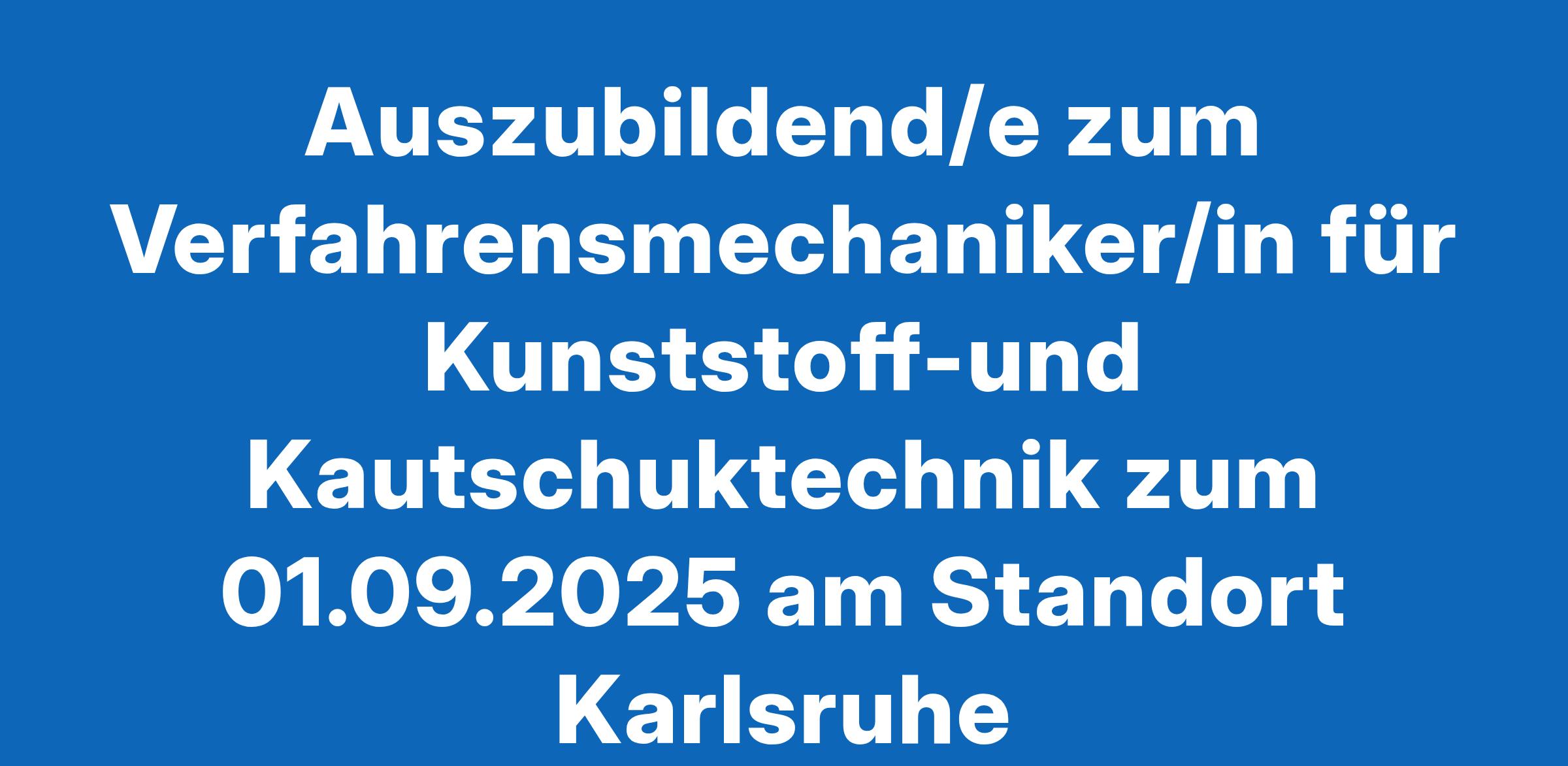 Auszubildend/e zum Verfahrensmechaniker/in für Kunststoff-und Kautschuktechnik zum 01.09.2025 am Standort Karlsruhe