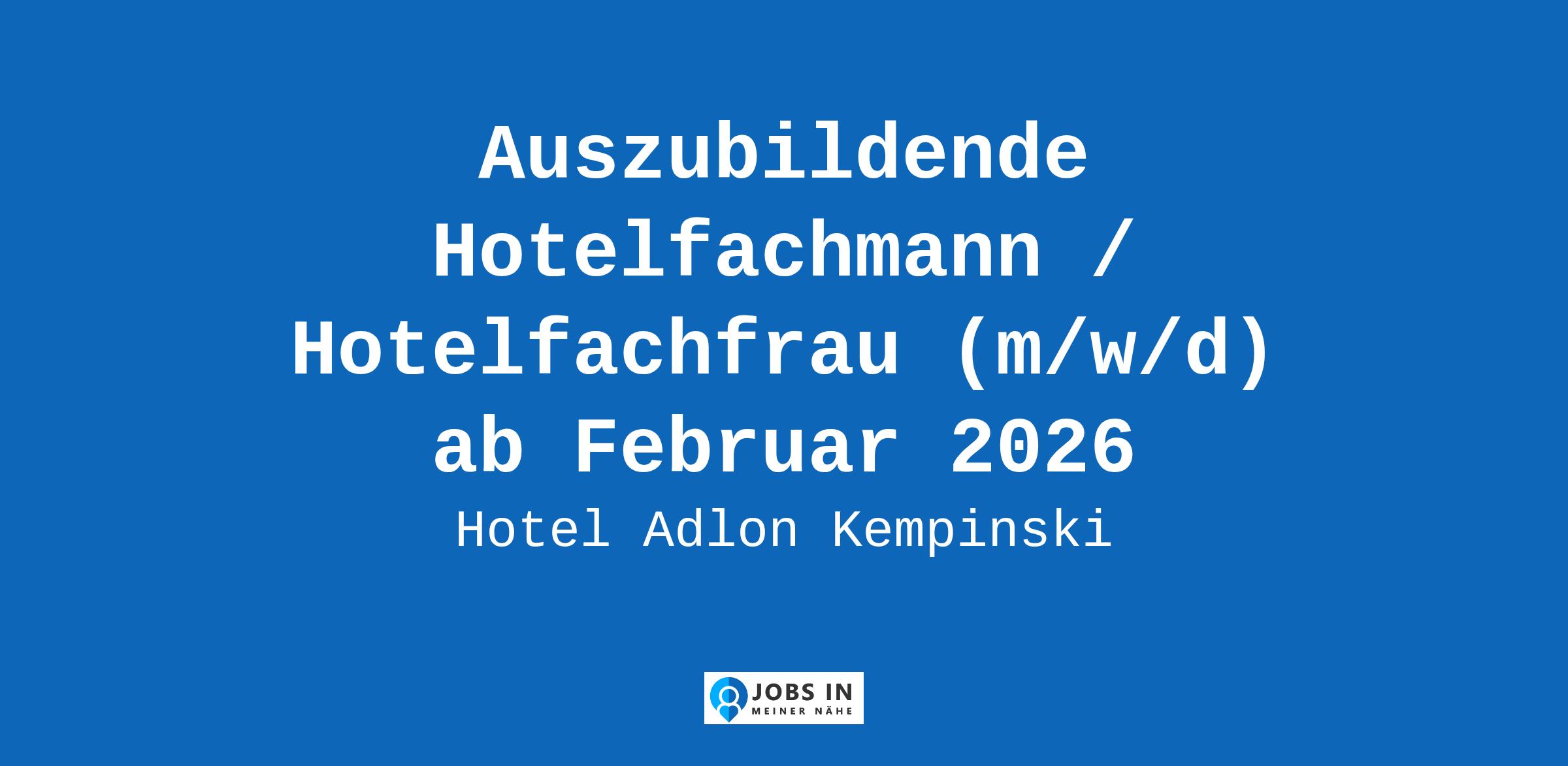 Zum Februar 2026 suchen wir wieder engagierte Nachwuchs-Hoteliers, die ihre Ausbildung im "ersten Haus am Platz" absolvieren möchten! Wir freuen uns auf Ihre Bewerbung! Das legendäre Hotel Adlon Kempinski, direkt neben Deutschlands wohl bekanntestem Wahrzeichen, dem Brandenburger Tor, fasziniert ... hogabackfill Engagement;Schulen;Partys;Schulung;Engagement;Berufsschule Original Stellenanzeige auf StepStone.de – Jetzt Jobagent bei StepStone einrichten und Traumjob finden! https://bit.ly/2KOagYD Mehr Informationen zu Arbeitgebern, Gehaltsdaten und Karrieretipps finden Sie auf StepStone.de