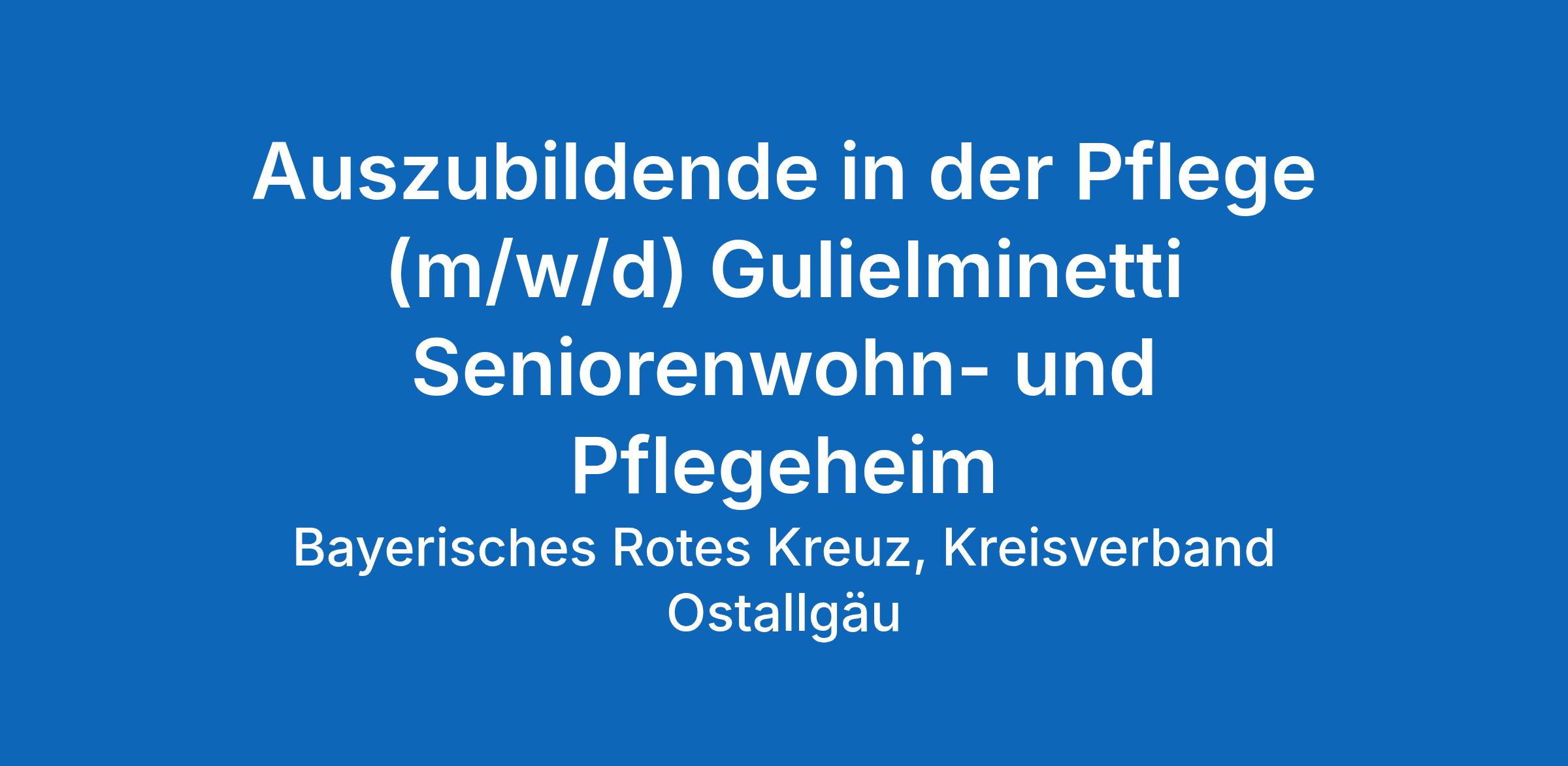 Das Bayerische Rote Kreuz, Körperschaft des öffentlichen Rechts, ist ein großer Wohlfahrtsverband und die führende Hilfsorganisation in Bayern. Der BRK-Kreisverband Ostallgäu beschäftigt ca. 900 MitarbeiterInnen. Darüber hinaus sind rund 2300 ehrenamtliche Helfer und Helferinnen im Einsatz. Als kompetenter Dienstleister suchen wir engagierte MitarbeiterInnen, die ihre Zukunft aktiv und vorausschauend mit uns gestalten möchten.