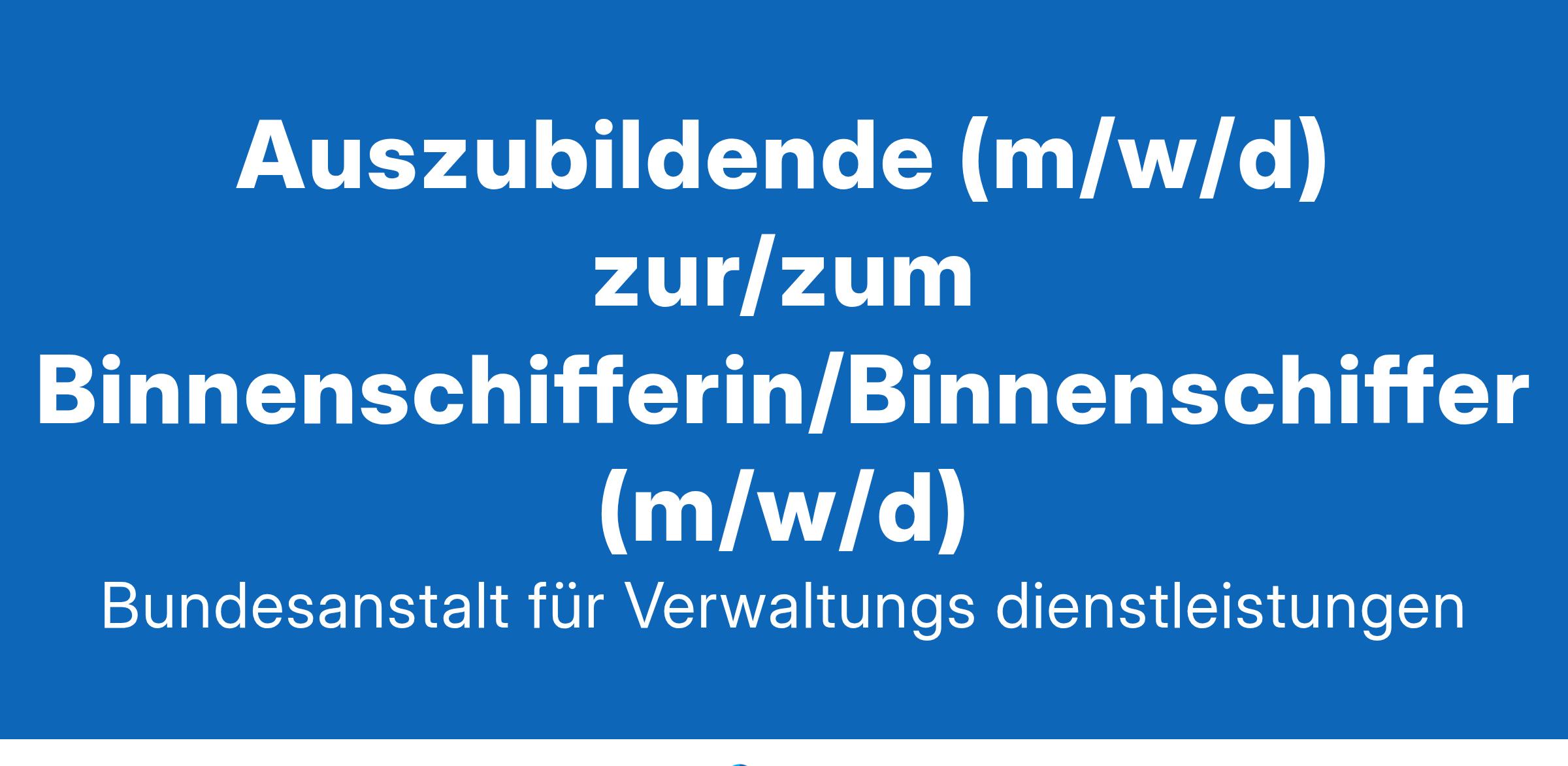 zur/zum Binnenschifferin/ Binnenschiffer (m/w/d) Ausbildungsorte sind Frankfurt, Hanau und Erlenbach. Die Ausbildungsdauer beträgt 3 Jahre. Referenzcode der Ausschreibung