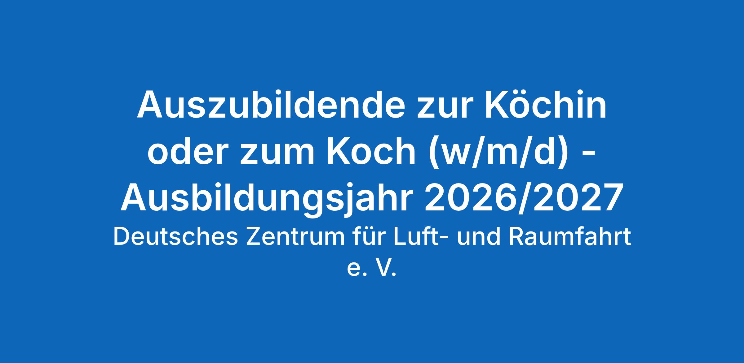 Steige ein in die faszinierende Welt des Deutschen Zentrums für Luft- und Raumfahrt e. V. (DLR), um mit Forschung und Innovation die Zukunft mitzugestalten! Mit dem Know-how und der Neugier unserer rund 12.000 Mitarbeitenden aus 100 Nationen sowie unserer einzigartigen Infrastruktur bieten wir ein spannendes und inspirierendes Arbeitsumfeld. Gemeinsam entwickeln wir nachhaltige Technologien und tragen so zur Lösung globaler Herausforderungen bei. Möchtest du diese große Zukunftsaufgabe mit uns zusammen angehen? Dann ist dein Platz bei uns!