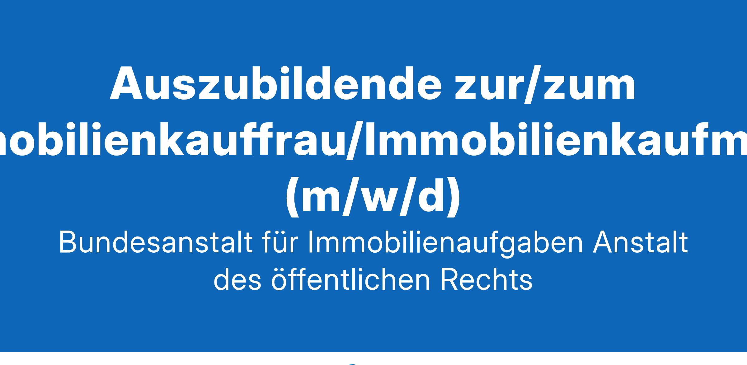 und vieles mehr auf www.bundesimmobilien.de Die Bundesanstalt für Immobilienaufgaben – Anstalt des öffentlichen Rechts – Direktion Koblenz sucht am Arbeitsort Frankfurt am Main zum 15. August 2025 zwei: Auszubildende zur/zum Immobilienkauffrau/ Immobilienkaufmann (w/m/d) (Kennung KOOP.Immo.2025) Was sind Ihre Aufgabenschwerpunkte? Ihre praktische Ausbildung dauert drei Jahre Die Berufsschule befindet sich in Frankfurt in der Nähe der Dienststelle, der Unterricht wird zwei Tage in der Woche stattfinden Immobilienkaufleute erwerben, vermieten, verwalten und verkaufen Immobilien jeglicher Art Was erwarten wir? Mindestens überdurchschnittlicher Realschulabschluss Gute Leistungen in den Fächern Deutsch und Mathematik Mobilität, Flexibilität und Teamfähigkeit Was bieten wir? 1. Ausbildungsjahr 1.218,26 € 2. Ausbildungsjahr 1.268,20 € 3. Ausbildungsjahr 1.314,02 € Jahressonderzahlung nach den geltenden tariflichen Bestimmungen 30 Tage Urlaub Haben wir Ihr Interesse geweckt? Dann bewerben Sie sich online bis zum 16. Februar 2025 auf www.interamt.de unter der Stellen-ID 1230401. www.bundesimmobilien.de