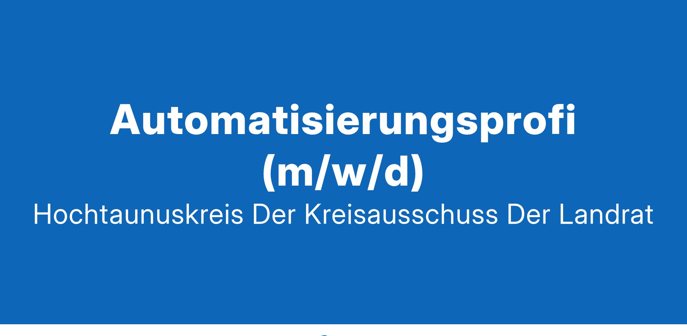 Der Kreisausschuss des Hochtaunuskreises sucht zum nächst möglichen Zeitpunkt einen IT- Prozess- und RPA Designer (m/w/d) für den Fachbereich 10.60 – Informations- und Technologieservice. Es handelt sich um eine unbefristete Vollzeitstelle. Schwerbehinderte werden bei gleicher Eignung bevorzugt berücksichtigt. Die Vergütung erfolgt je nach Eignung und Qualifikation nach den Bestimmungen des TVöD. Das Aufgabengebiet umfasst u. a.: Prozessdesign im Rahmen der digitalen Transformation Mitarbeit und Durchführung von IT-Projekten im Rahmen der digitalen Transformation Unterstützung des Servicedesks in Digitalisierungsfragen Pflege der Schnittstellen und Automatisierung von Datenübergaben Einsetzen und bedienen der künftigen Low-Code, No-Code und RPA Plattformen Erarbeiten und Design von RPA Anwendungen Sicherstellen der Informationen durch fachliches und technisches Dokumentieren Wir erwarten: Fachinformatiker der Fachrichtung Anwendungsentwicklung (m/w/d), Systemkauffrau/mann, IT Kauffrau/mann Mindestens 3 Jahre Berufserfahrung Grundkenntnisse im Bereich der Programmierung Grundkenntnisse im Bereich des Projektmanagements Grundkenntnisse im Dokumentieren von Prozessen nach bpmn 2.0 Kenntnisse im Bereich von Digitalisierungstechnologien Die Teilnahme an der Weiterbildung zum CIVENTO Designer Verwaltungskenntnisse sind von Vorteil Strukturiertes Arbeiten, Organisations- und Planungsfähigkeit Aufgeschlossenheit gegenüber neuen Themen Ein hohes Maß an konzeptionellem und systematischem Vorgehen Gute mündliche und schriftliche Ausdrucksfähigkeit Belastbarkeit und serviceorientiertes Arbeiten Fahrerlaubnis Klasse B und die Bereitschaft den Privat-PKW dienstlich einzusetzen Wir bieten: Ein interessantes, abwechslungsreiches und verantwortungsvolles Aufgabengebiet in einem aufgeschlossenen und innovativen Team Fundierte Einarbeitung mit schrittweiser Übernahme der zugewiesenen Aufgaben Wir fördern Sie mit umfangreichen Fortbildungsmöglichkeiten bei Ihrer fachlichen und persönlichen Weiterentwicklung Flexible Arbeitszeitmodelle mit festen familienfreundlichen Arbeitszeiten Arbeitsfreie Tage am 24.12. und 31.12. 30 Urlaubstage (bei einer 5-Tage Woche) Hausinterne Kinderbetreuung für Kinder unter 3 Jahren bis hin zum Schuleintritt Eine Jahressonderzahlung Ein zusätzliches regelmäßiges Leistungsentgelt Betriebliche Altersvorsorge Vermögenswirksame Leistungen Ein kostenfreies Jobticket für das gesamte Gebiet des Rhein-Main-Verkehrsverbundes Betriebssportangebot Benefits auf verschiedenen Portalen namhafter Anbieter Sie sind auf der Suche nach einer neuen beruflichen Herausforderung und wünschen sich gleichzeitig einen sicheren Arbeitsplatz mit spannenden Aufgabenfeldern, dann freuen wir uns auf Ihre Bewerbung. Ihre aussagefähige Bewerbung, mit Angabe Ihrer Gehaltsvorstellung , reichen Sie bitte bevorzugt in elektronischer Form bis zum 24. Februar 2025 unter ein oder alternativ in schriftlicher Form an: Kreisausschuss des Hochtaunuskreises -Personalservice- Ludwig-Erhard-Anlage 1-5 61352 Bad Homburg v. d. Höhe Für weitere Auskünfte steht Ihnen die Leitung des Personalservice (Hr. Sauer, 06172 999 1100) und die Leitung des Fachbereichs 10.60 – Informations- und Technologieservice – (Hr. Falkenstein, 06172 999 1600) gerne zur Verfügung.