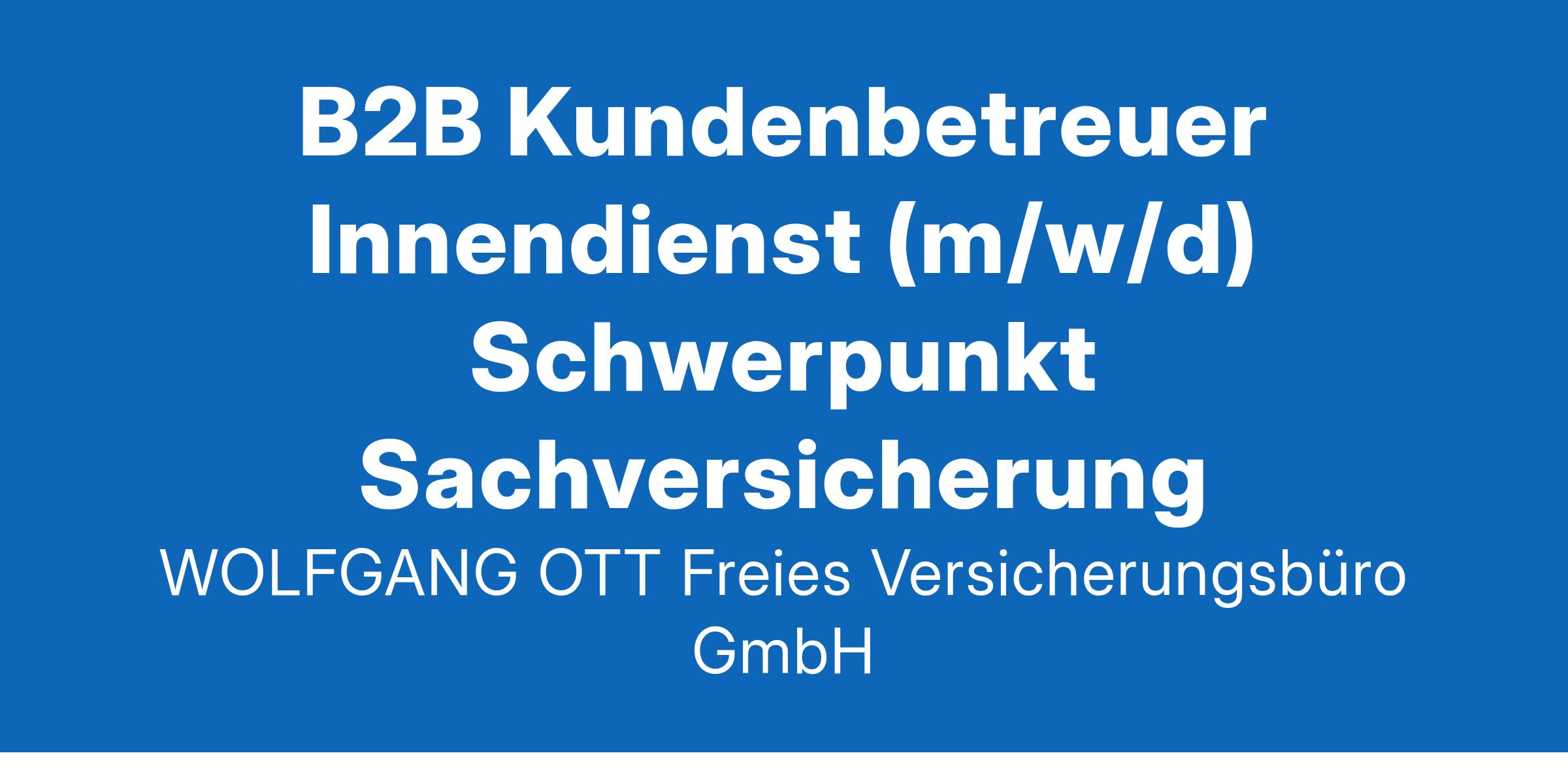 Ihr Weg – unser Team GEMEINSAM EINFACH MACHEN: Entfesseln Sie Ihre Tatkraft und entfalten Sie das volle Potenzial Ihrer Talente bei der ARTUS GRUPPE. Die Wolfgang OTT Freies Versicherungsbüro GmbH ist seit 1964 führender Spezialmakler für freie Berufe, insbesondere Architektur und Beratende Ingenieurbüros. Um weiter erfolgreich zu wachsen, suchen wir Sie als: B2B Kundenbetreuer Innendienst (w/m/d) | Schwerpunkt Sachversicherung Wolfgang Ott Freies Versicherungsbüro GmbH Stuttgart Vollzeit Ihre Aufgaben: Betreuung unserer Kunden im Bereich der Sachversicherungen für Architekten/ Beratende Ingenieure. Sie sind interner Ansprechpartner für Risikoanalysen und –bewertungen und alle Fragen unserer Kunden. Für unsere Kunden prüfen, analysieren & bewerten Sie Versicherungskonzepte. Sie sind ein kommunikationsstarker Teamplayer und legen eine selbstständige, strukturierte Arbeitsweise an den Tag. Der Umgang mit Kunden bereitet Ihnen Freude und Ihr souveränes Auftreten setzen Sie hier gekonnt ein. Kurzprofil auf einen Blick: Abgeschlossene Ausbildung zum Kaufmann/-frau für Versicherungen und Finanzanlagen / abgeschlossene Ausbildung zum Bankkaufmann/-frau / Weiterbildung zum Versicherungs- oder Bankfachwirt. Gute Fachkenntnisse in der Sachversicherung. Ausgeprägte Kommunikationsfähigkeit und Verhandlungsgeschick. Engagement, Flexibilität und Einsatzbereitschaft. Gute Grundkenntnisse in MS-Office. Ihre Qualifikationen: Das bieten wir Ihnen: FLEXIBILITÄT | Gleitzeit-Modell und Möglichkeit zum mobilen Arbeiten (Homeoffice) WEITERBILDUNG | mit der ARTUS Academy & externen Angeboten – immer individuell zusammengestellt VORSORGE | betriebliche Altersversorgung & betriebliche Krankenversicherung BEWEGUNG | EGYM/ Wellpass Mitgliedschaft & Dienstradleasing RABATTE | Zugang zum Vorteilsportal Corporate Benefits ZUSAMMENHALT | regelmäßige Mitarbeiterevents Kurzum: Bei uns haben Sie erstklassige Aussichten auf eine abwechslungsreiche Tätigkeit in einem inhabergeführten Familienunternehmen. Werden Sie Teil unseres Teams und unterstützen Sie uns dabei, die Erfolgsgeschichte der ARTUS GRUPPE fortzuschreiben. / GEMEINSAM EINFACH MACHEN / Noch Fragen? Kein Problem: Dann wenden Sie sich einfach an: Katharina Fritsch - Mitglied der Geschäftsführung 0711 896657 37 Wir freuen uns auf Sie! Artus AG Karlsruher Str. 57-63 - 76532 Baden-Baden - Deutschland