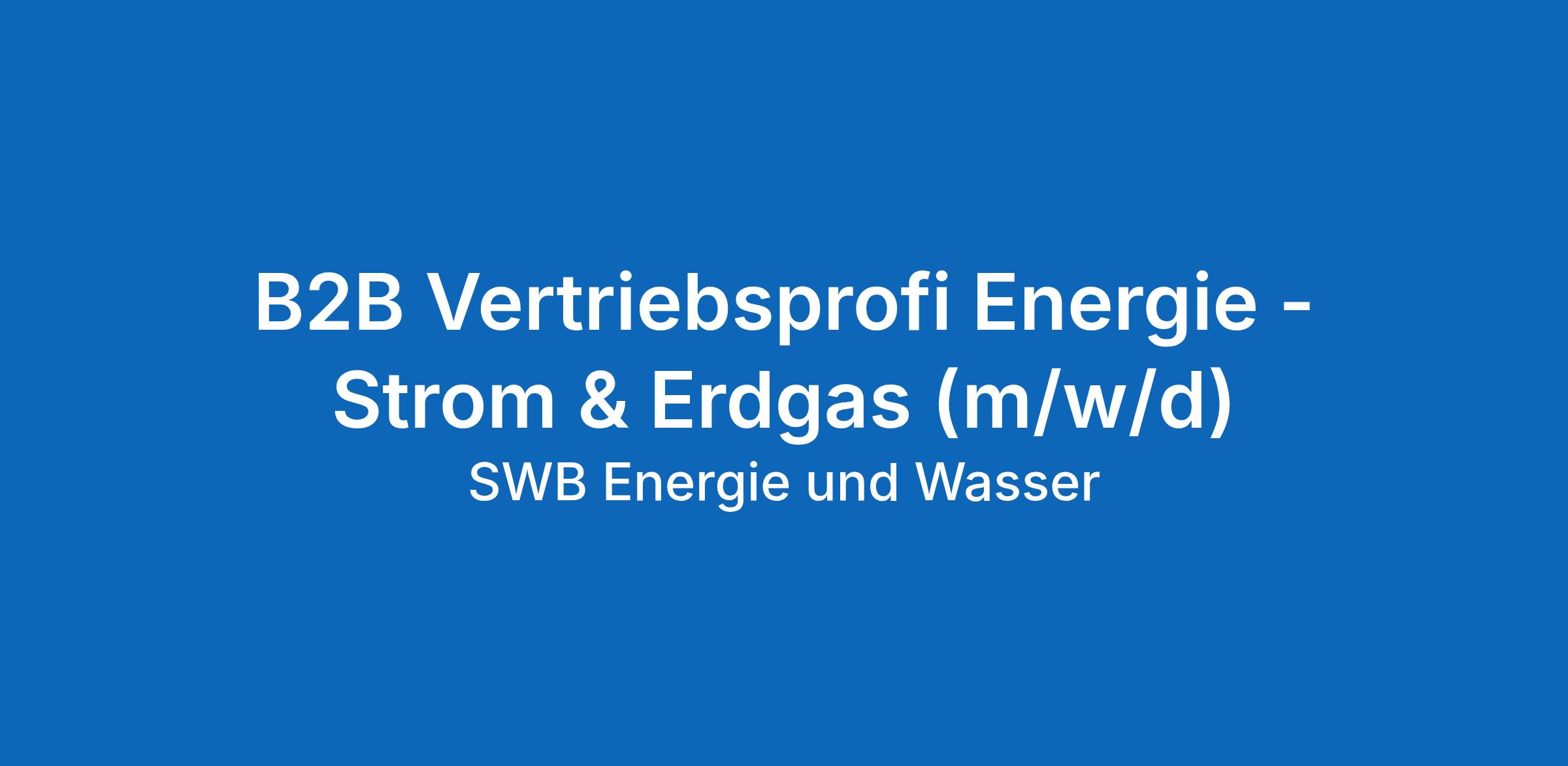 Du liebst es, neue Geschäftspotenziale zu erschließen und nachhaltige Kundenbeziehungen aufzubauen? Dann werde Teil der SWB Energie und Wasser!