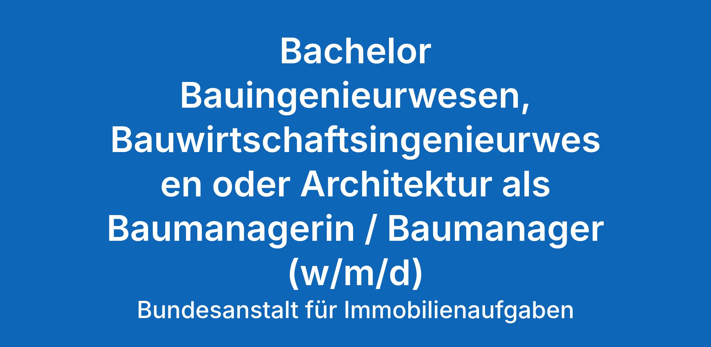 Abgeschlossenes Hochschulstudium (Diplom [FH]/Bachelor) der Fachrichtungen Bauwirtschaftsingenieurwesen, Bauingenieurwesen oder Architektur des Bau- und Immobilienmanagements oder vergleichbare Qualifikation