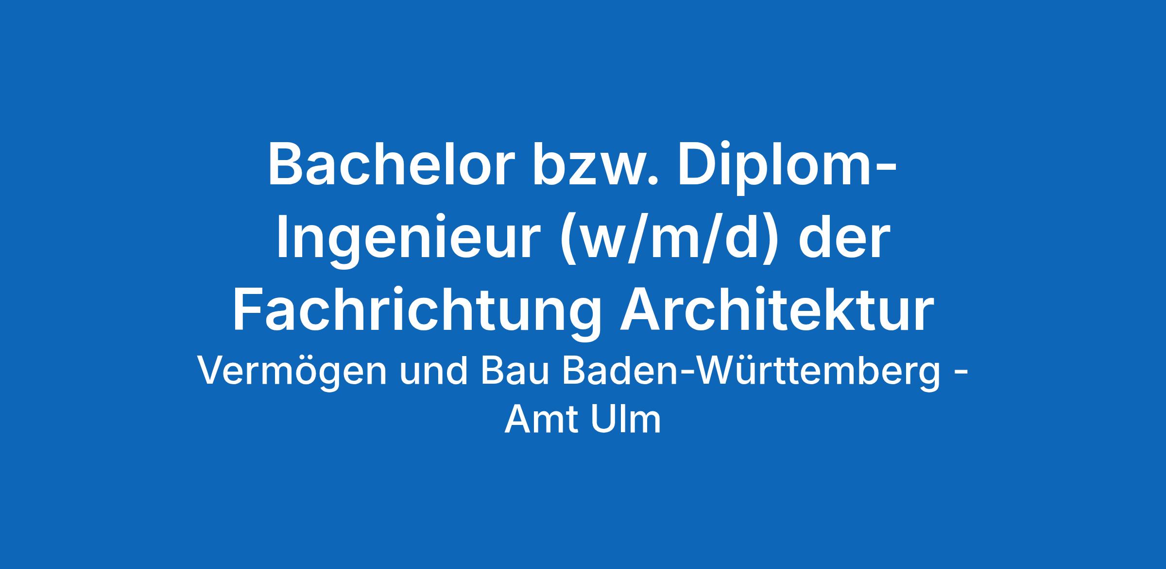 Ihre aussagekräftige Bewerbung können Sie bis zum 25.04.2026 unter Auswahl „Amt Ulm“ und der Kennziffer VBBW-Amt-UL-002 in unserem Bewerberportal (https://bewerberportal.landbw.de/vbv) einreichen.