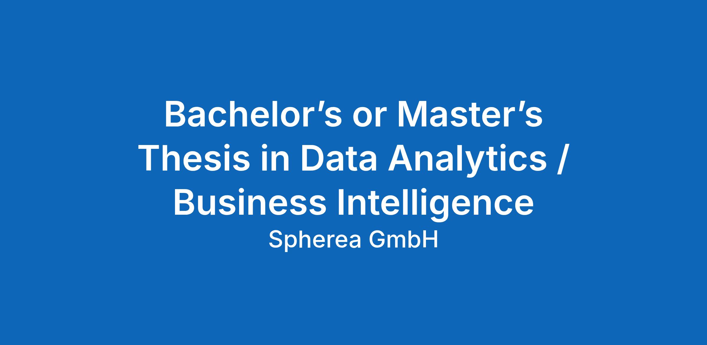 Bachelor’s or Master’s Thesis in Data Analytics / Business Intelligence