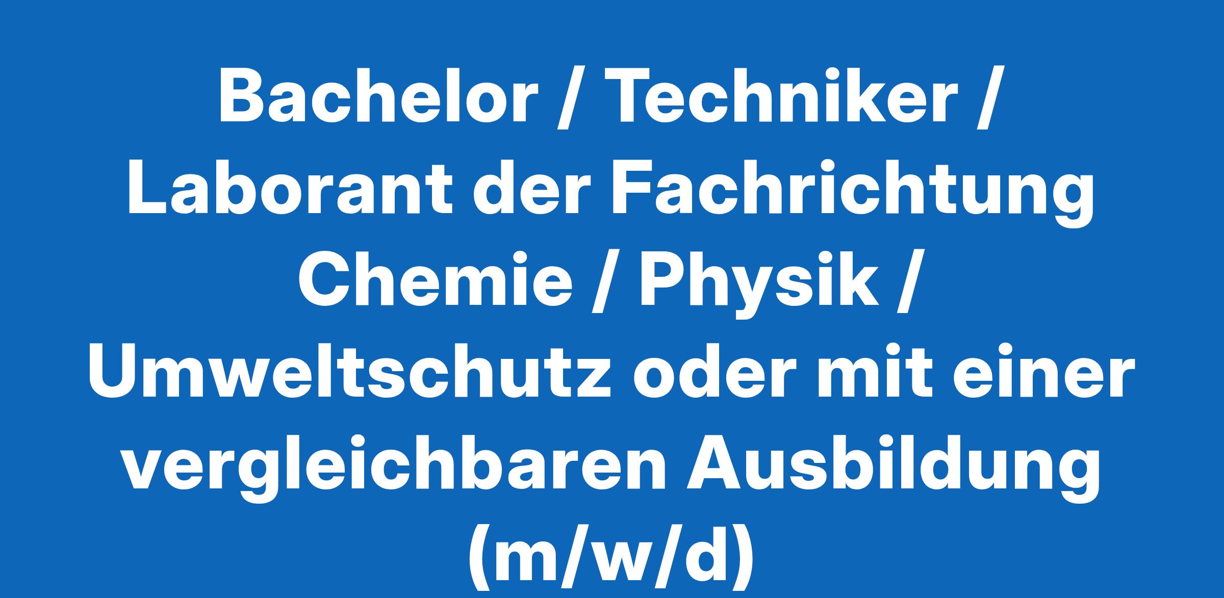 Bachelor / Techniker / Laborant der Fachrichtung Chemie / Physik / Umweltschutz oder mit einer vergleichbaren Ausbildung (m/w/d)