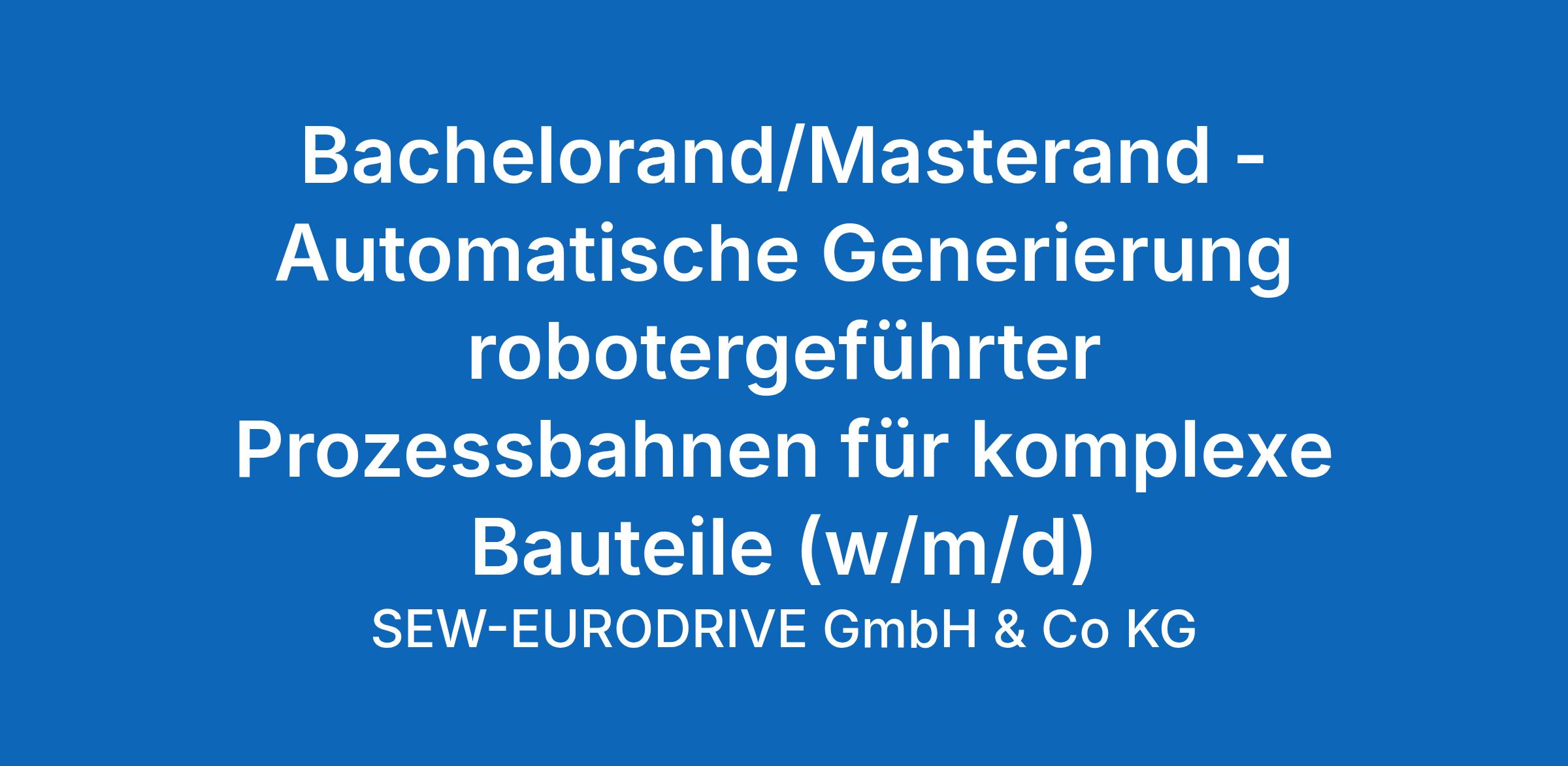 Bachelorand/Masterand - Automatische Generierung robotergeführter Prozessbahnen für komplexe Bauteile (w/m/d)