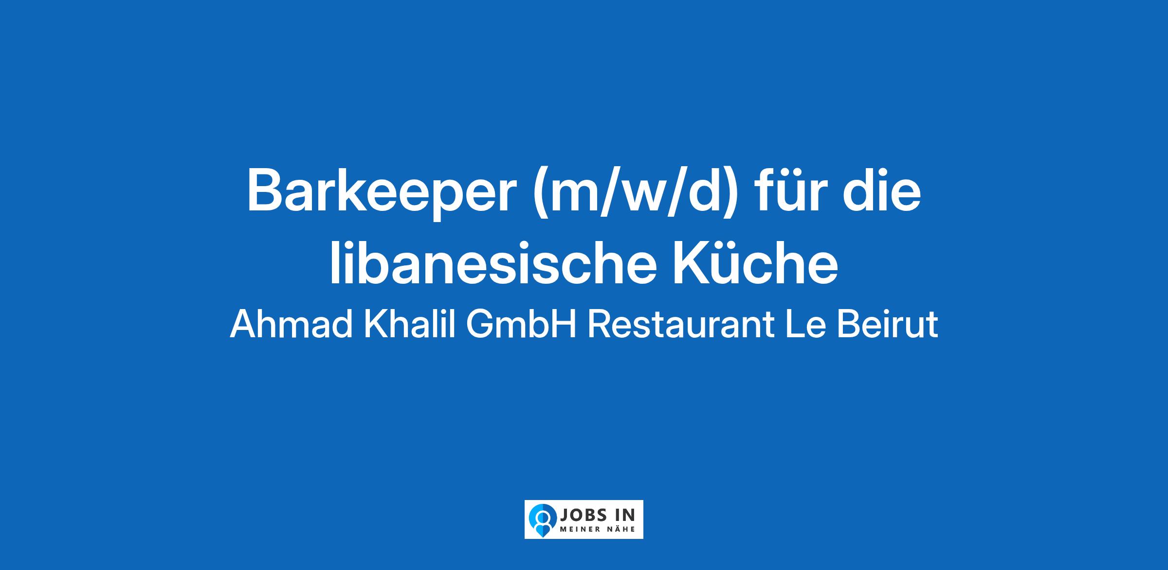 Wir sind ein aufstrebendes Restaurant, das sich auf die köstlichen Aromen und die Vielfalt der libanesischen Küche spezialisiert hat. Zur Verstärkung unseres Teams suchen wir einen Barkeeper (m/w/d), der mit Freude und Engagement unser Team unterstützt. Zubereitung von nicht-alkoholischen Getränk... Hygienevorschriften;Englisch;Flexibilität;Gästebetreuung;Deutsch;Kreatives Arbeiten;Drinks/Cocktails;Sozialkompetent;Gastronomie;Englisch;Deutsch;Bar;Verantwortung;Libanesische Küche;Sprache Original Stellenanzeige auf StepStone.de – Jetzt Jobagent bei StepStone einrichten und Traumjob finden! https://bit.ly/2KOagYD Mehr Informationen zu Arbeitgebern, Gehaltsdaten und Karrieretipps finden Sie auf StepStone.de