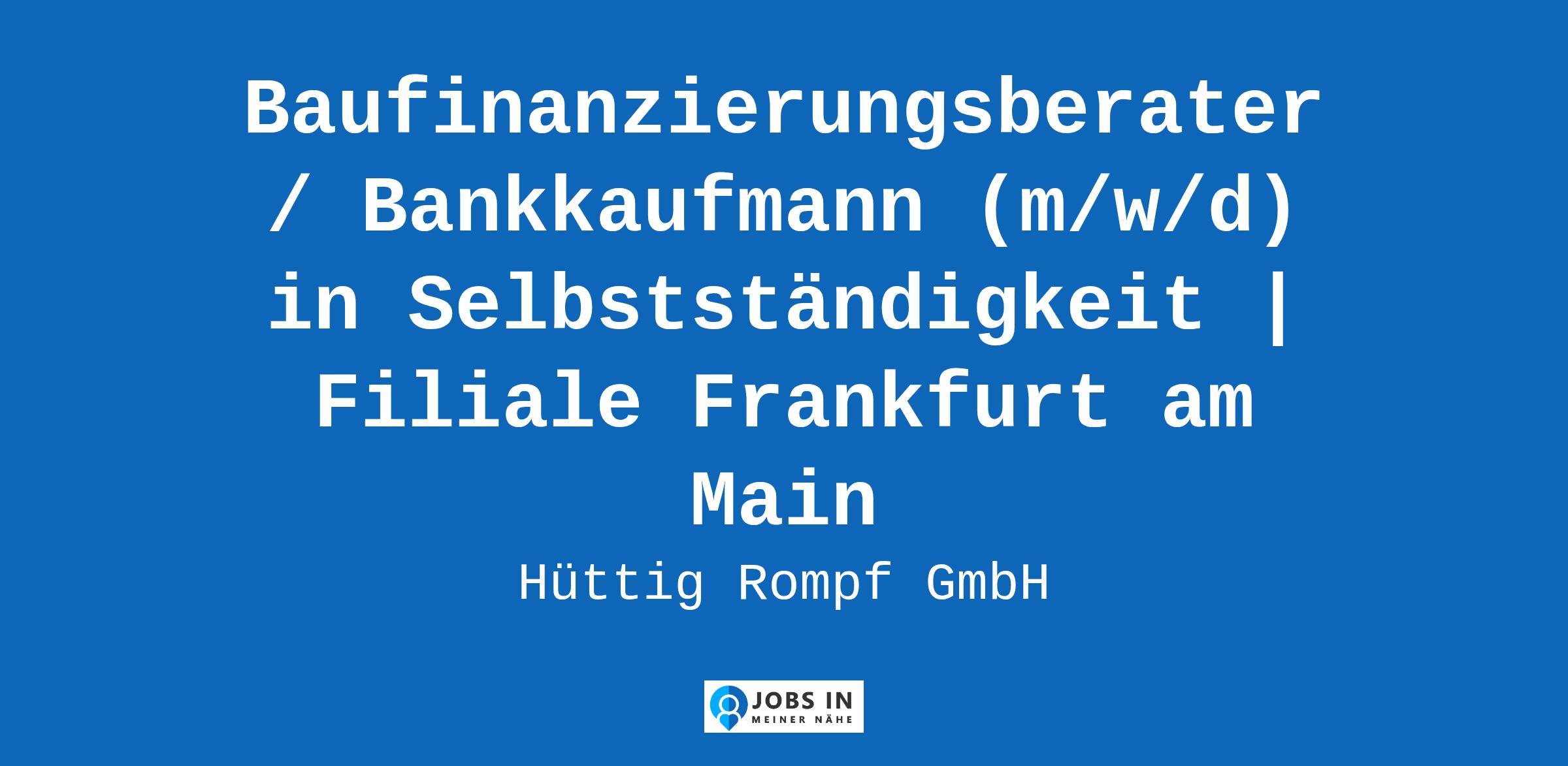 Bei Hüttig & Rompf arbeitest du selbstständig nach § 84 HGB – aber mit echtem Rückhalt: Du profitierst von einer starken Marke und einem gewachsenen Netzwerk in der Immobilienwirtschaft. Deine Kund*innen kommen aus dem Empfehlungsgeschäft – direkt über unsere langjährigen Partner wie Makler, Baut... Real Estate;Coaching;Versicherungswesen;Flexibilität;Netzwerke;Bankenbereich;Marken;Konzentriert;Digitale Tools;kollegial;Kaltanrufe;Onboarding;Klar;Bankdienst;Business;Baufinanzierung;Vertrauen;Back Office;Beratung Original Stellenanzeige auf StepStone.de – Jetzt Jobagent bei StepStone einrichten und Traumjob finden! https://bit.ly/2KOagYD Mehr Informationen zu Arbeitgebern, Gehaltsdaten und Karrieretipps finden Sie auf StepStone.de