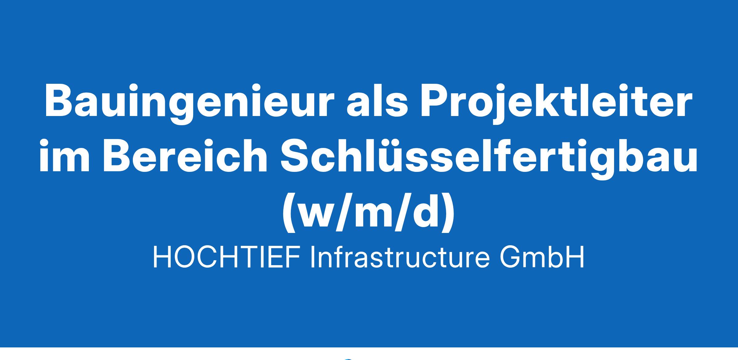 HOCHTIEF ist ein technisch ausgerichteter, globaler Infrastrukturkonzern mit führenden Positionen in seinen Kernaktivitäten Bau, Dienstleistungen und Konzessionen/Public-Private-Partnerships (PPP) und mit Tätigkeitsschwerpunkten in Australien, Nordamerika und Europa.HOCHTIEF Infrastructure realisiert Verkehrs-, Energie- und Hochbauprojekte in Deutschland und Europa. Wir bieten Leistungen für alle Realisierungsphasen von Gebäuden, Brücken, Straßen, Tunneln, Häfen, Schienenwegen, Flughäfen oder Anlagen zur Erzeugung konventioneller und erneuerbarer Energie.Bewerben