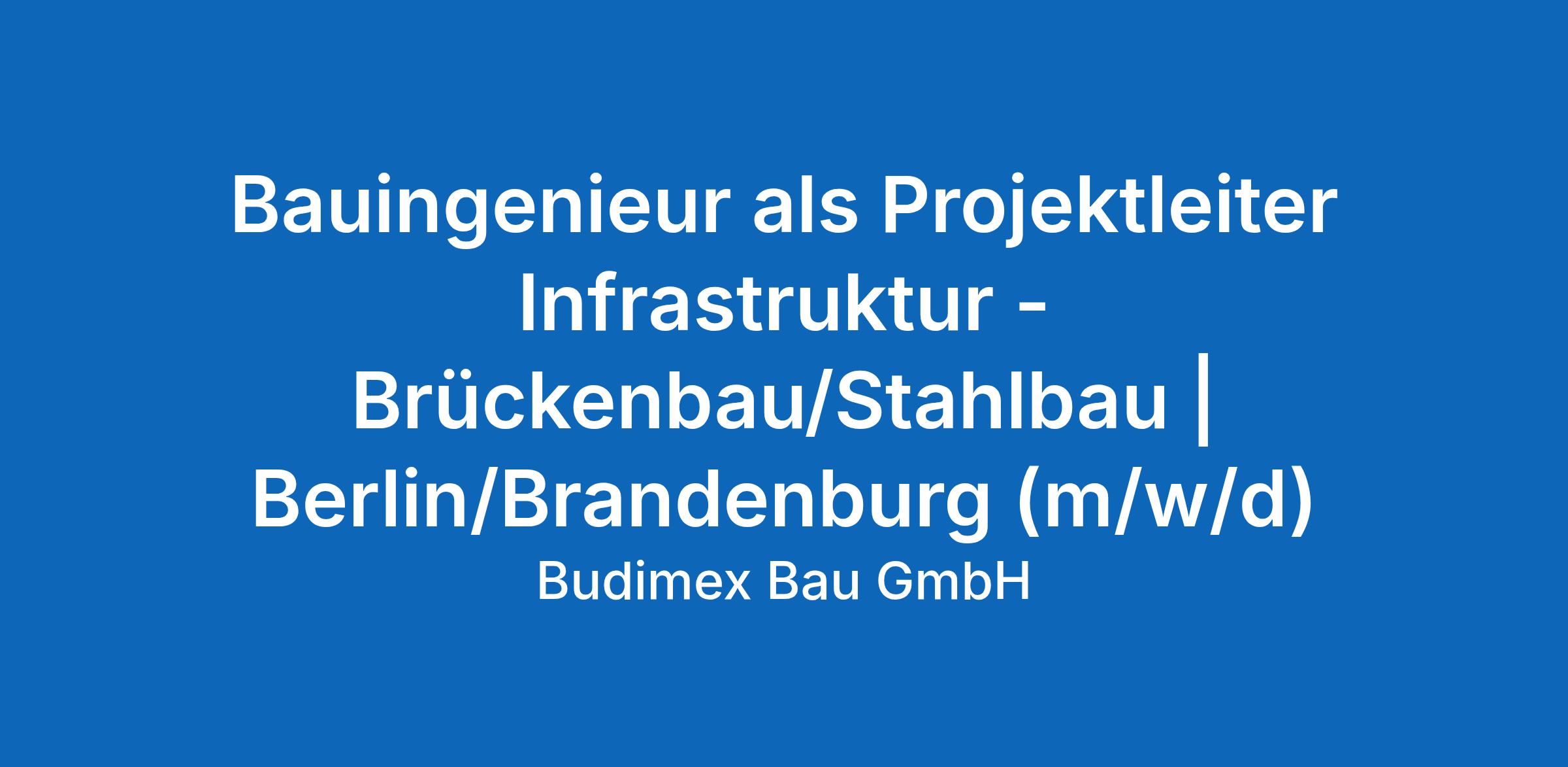 Bauingenieur als Projektleiter Infrastruktur – Brückenbau/Stahlbau | Berlin/Brandenburg (m/w/d)