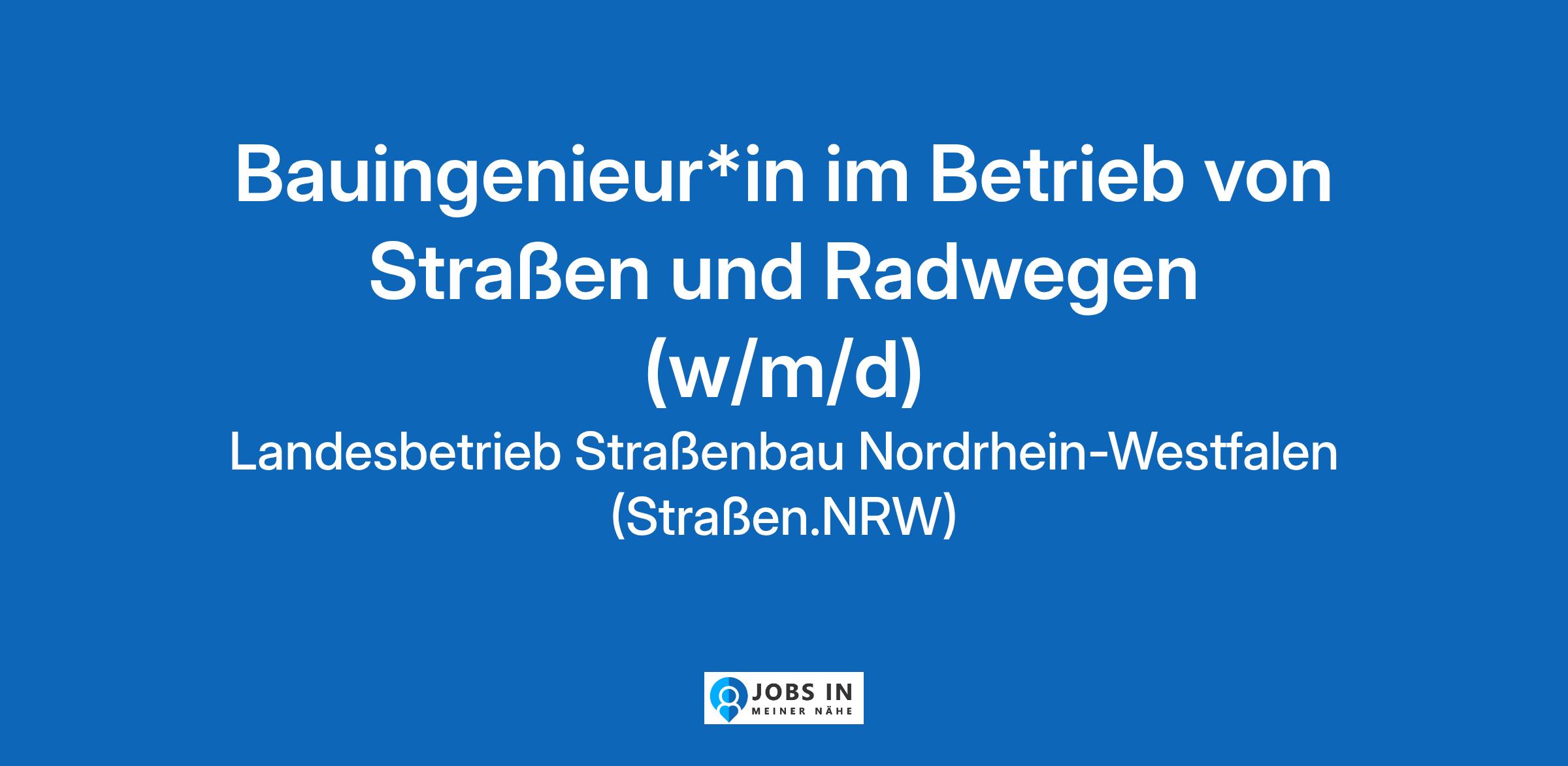 Der Landesbetrieb Straßenbau Nordrhein-Westfalen (Straßen.NRW) sucht zum nächstmöglichen Zeitpunkt für den Standort Region I NL Ostwestfalen-Lippe, Dienstort Bielefeld in Vollzeit oder Teilzeit eine*n Bauingenieur*in im Betrieb von Straßen und Radwegen (w/m/d).