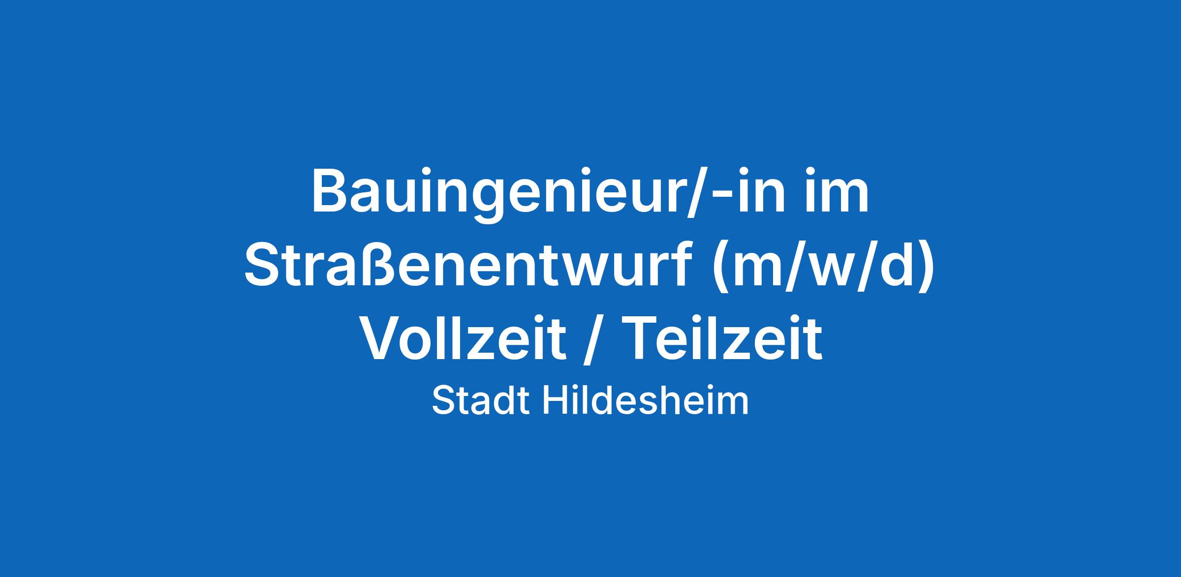Bei der Stadt Hildesheim ist im Fachbereich Tiefbau, Verkehr und Grün zum nächstmöglichen Zeitpunkt die Stelle