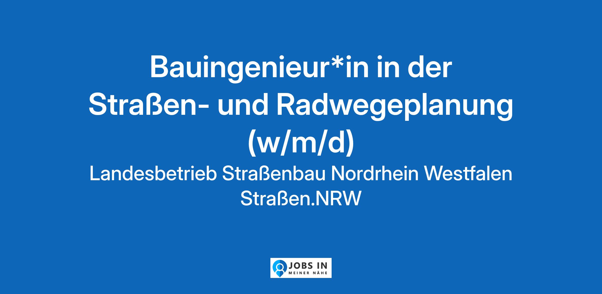 Wir sind der Ansprechpartner Nummer eins, wenn es um Bundes- und Landesstraßen oder Rad(schnell)wege im bevölkerungsreichsten Bundesland geht. Wir sind Straßen.NRW. Ein zentraler, moderner Mobilitätsdienstleister, der jedoch im ganzen Land - vor Ort - zu finden ist. Wir können bereits auf 20 erfo... Ingenieurwesen;Inklusion;Ausschreibung;Ansprechpartner;Hoch- und Tiefbau;Straßenplanung;Technische Beratung;Zielgerichtet;Entwicklung;Eigeninitiative;Mobilität;Straßenbau;Schwerbehinderte;Verhandlungsführung;Kollegialität;Ingenieurbüro;Erfüllung;Betreuung;Sicherheit Original Stellenanzeige auf StepStone.de – Jetzt Jobagent bei StepStone einrichten und Traumjob finden! https://bit.ly/2KOagYD Mehr Informationen zu Arbeitgebern, Gehaltsdaten und Karrieretipps finden Sie auf StepStone.de