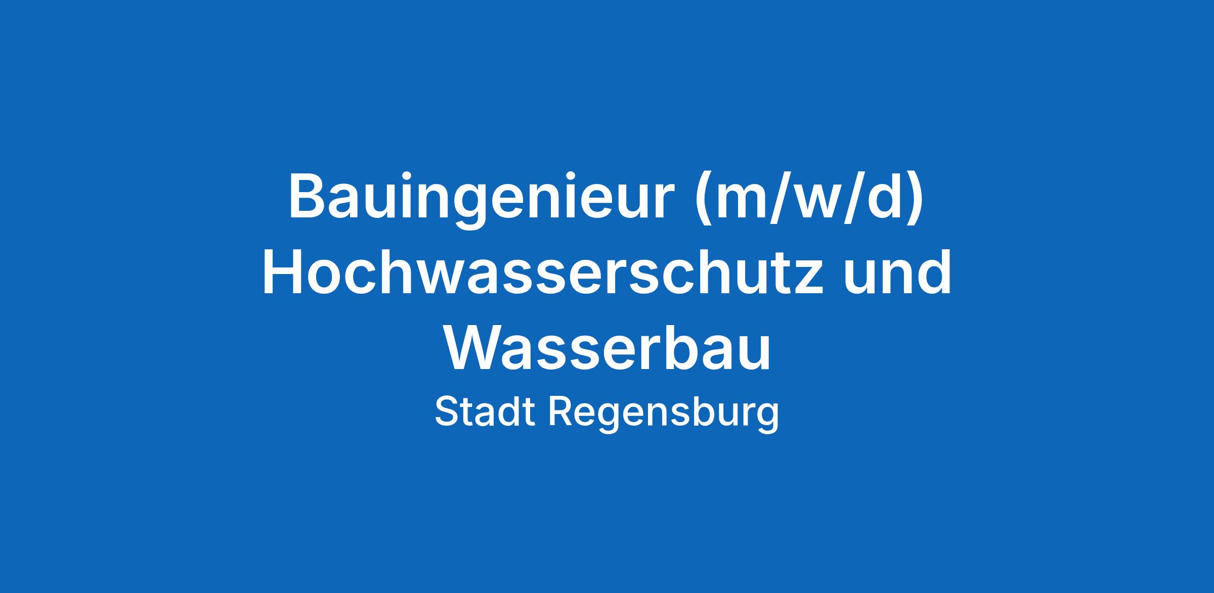 Gemeinsam mit der Stadt Regensburg die Zukunft gestalten! Wir suchen für das Tiefbauamt, Abteilung Hochwasserschutz und Wasserbau, eine/-n Bauingenieur /-in (m/w/d).