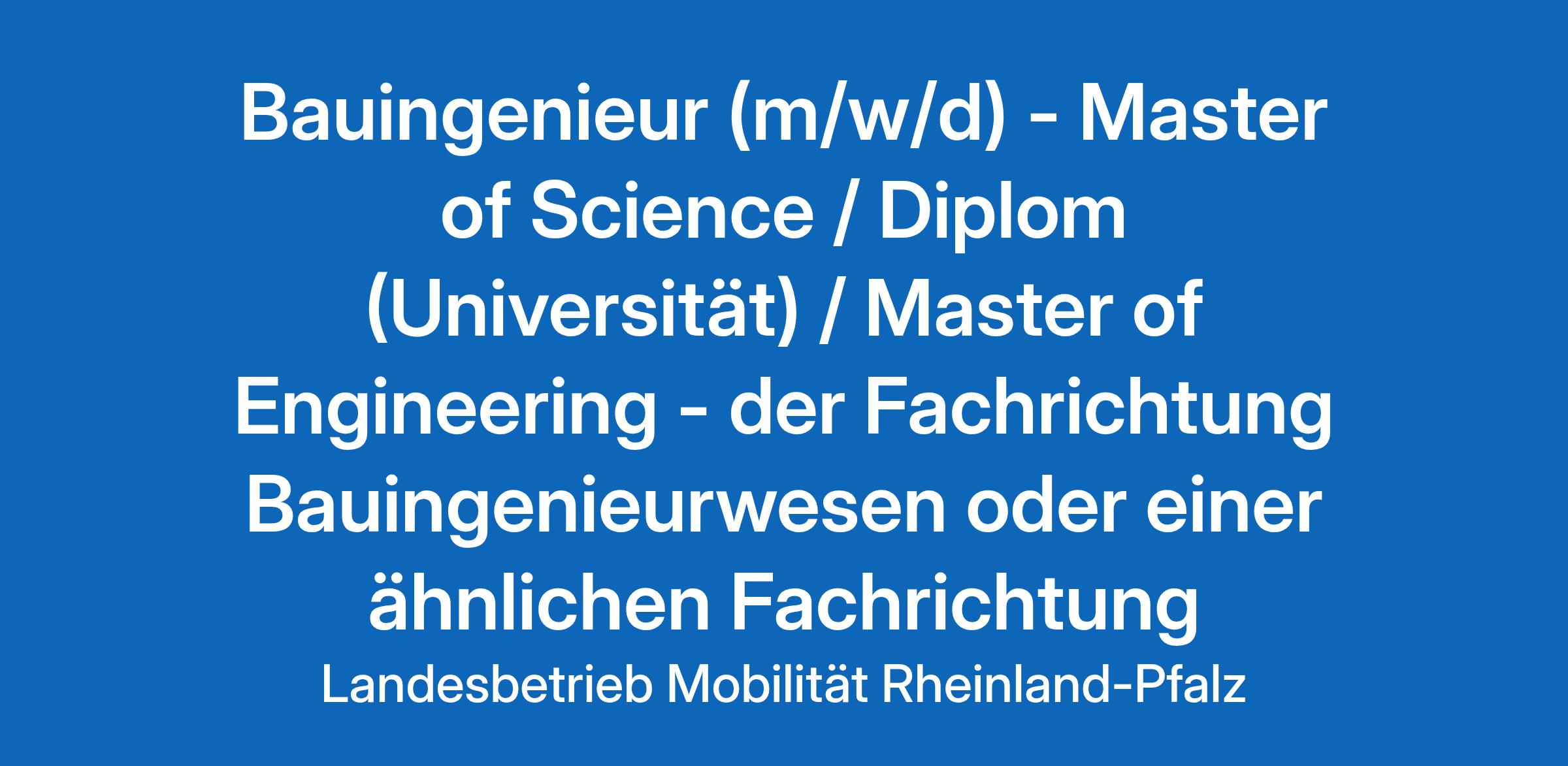 abgeschlossenes Ingenieurstudium (Master of Science, Universitäts-Diplom oder Master of Engineering) der Fachrichtung Bauingenieurwesen oder einer ähnlichen Fachrichtung