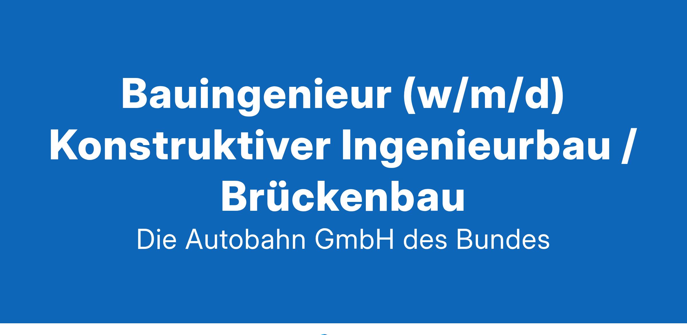 Bauingenieur (w/m/d) Konstruktiver Ingenieurbau / BrückenbauGemeinsam. Sicher. Mobil.Eine funktionierende Autobahninfrastruktur ist der Garant dafür, dass Deutschland mobil ist. Damit das so bleibt, brauchen wir Ihre Expertise als Ingenieurin oder Ingenieur.