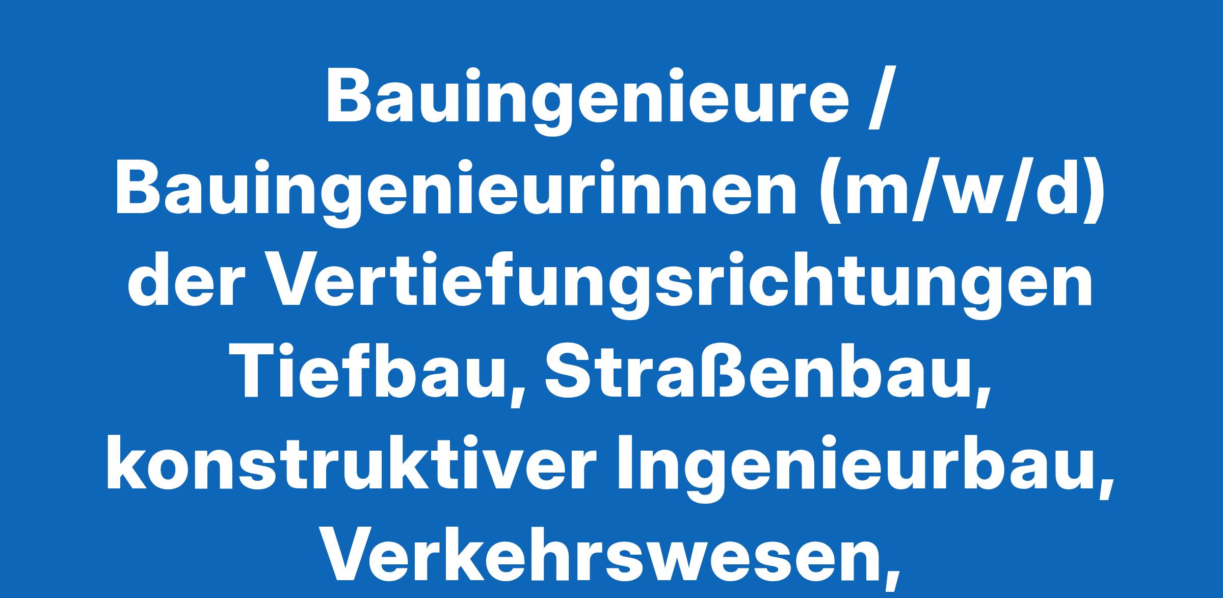 Bauingenieure / Bauingenieurinnen (m/w/d) der Vertiefungsrichtungen Tiefbau, Straßenbau, konstruktiver Ingenieurbau, Verkehrswesen, Siedlungswasserwirtschaft oder Wasserbau