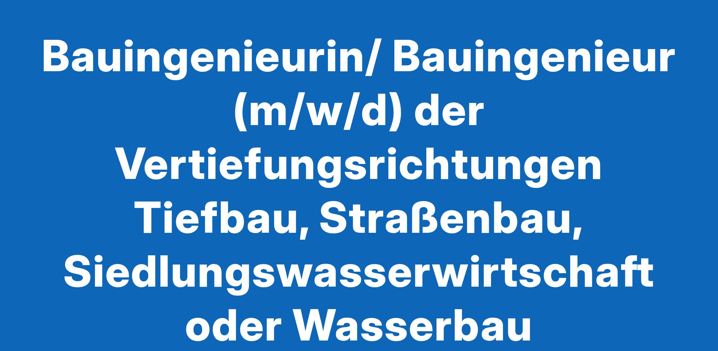 Bauingenieurin/ Bauingenieur (m/w/d) der Vertiefungsrichtungen Tiefbau, Straßenbau, Siedlungswasserwirtschaft oder Wasserbau