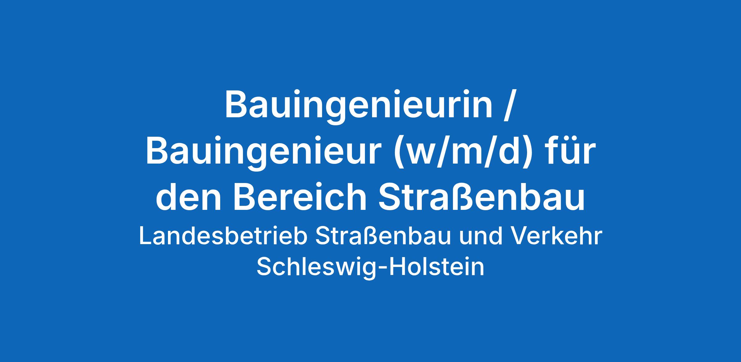 Im Landesbetrieb Straßenbau und Verkehr Schleswig-Holstein sind zum nächstmöglichen Zeitpunkt an den Standorten Kiel, Flensburg, Rendsburg, Itzehoe und Lübeck Stellen als