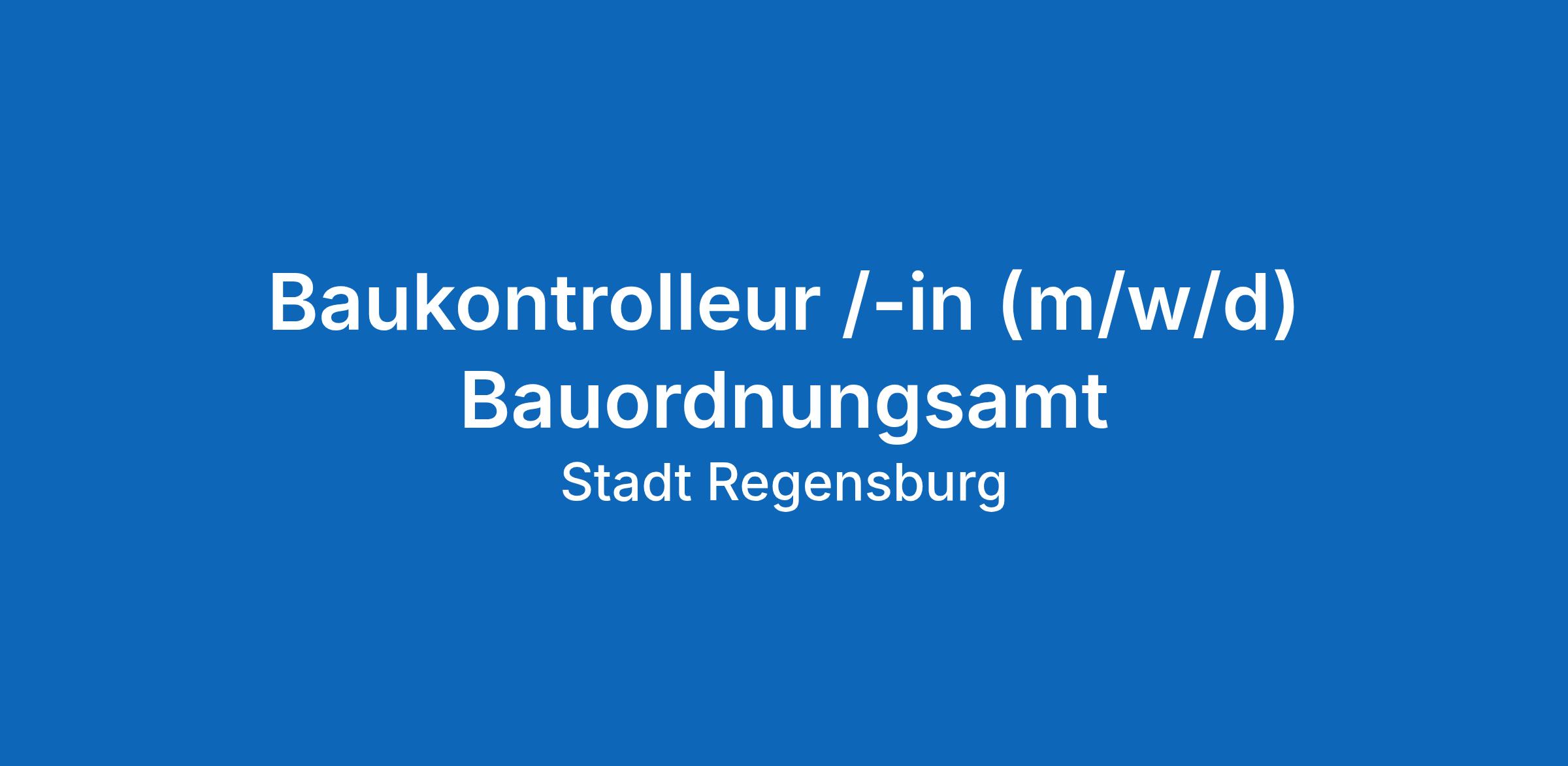 Gemeinsam mit der Stadt Regensburg die Zukunft gestalten! Wir suchen für das Bauordnungsamt eine/-n Baukontrolleur/-in (m/w/d).