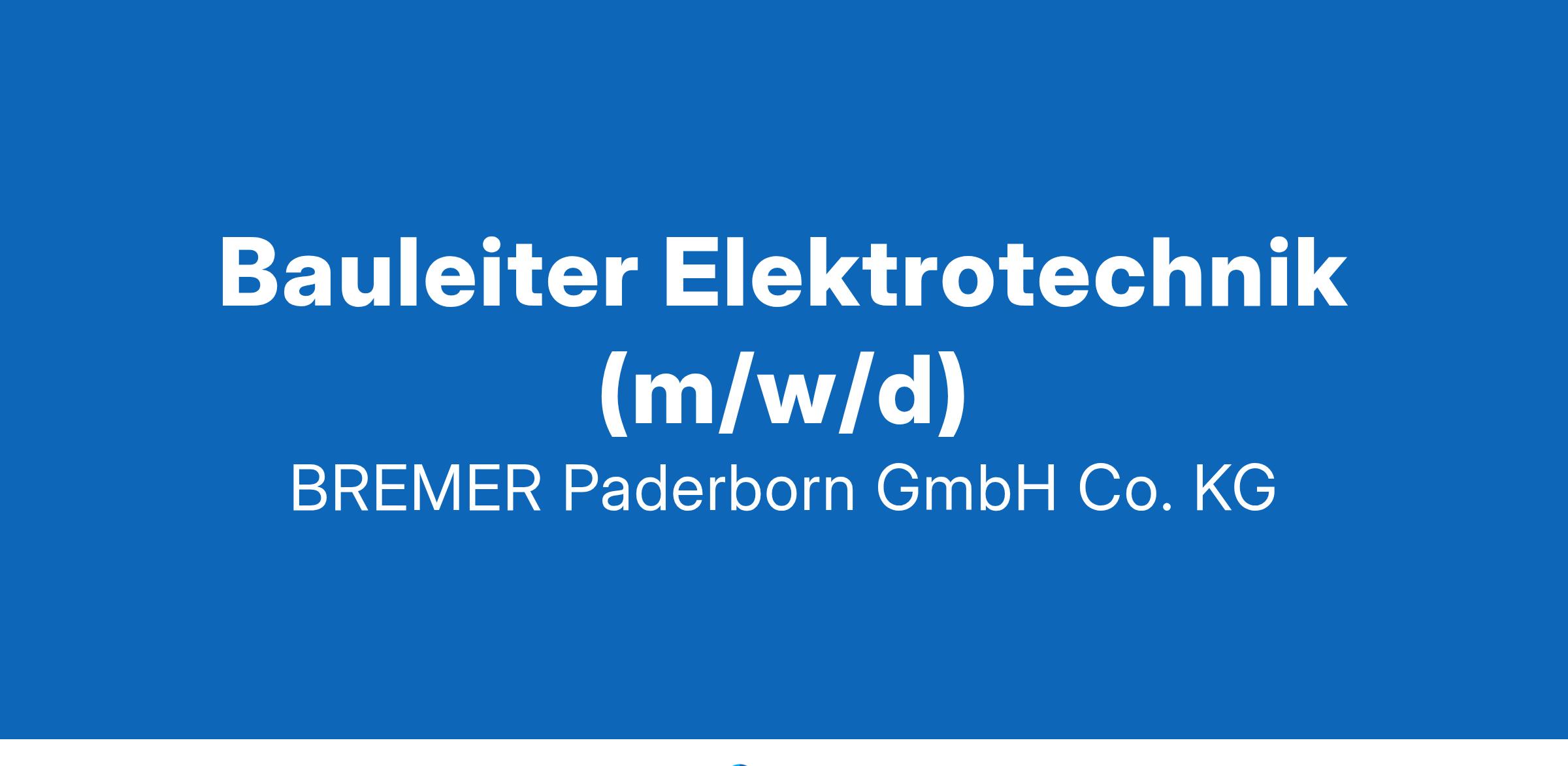 BAULEITER ELEKTROTECHNIK (m/w/d)Paderborn, BREMER Paderborn GmbH & Co. KGBerufserfahrungArchitektur, BauwesenWIR SIND:In Deutschland zählt BREMER zu den führenden Unternehmen im schlüsselfertigen Industrie- und Gewerbebau. Als ganzheitlicher Anbieter der Immobilien- und Bauwirtschaft begleiten wir unsere Kunden von der Projektentwicklung über die Fertigung in eigenen Werken bis zum schlüsselfertigen Bau und den Serviceleistungen für das Gebäude im laufenden Betrieb. Das 1947 gegründete Familienunternehmen agiert an fünfzehn deutschen und zwei polnischen Standorten und erwirtschaftet aktuell eine Betriebsleistung von gut 1.100 Mio. EUR. Rund 1300 Mitarbeitende setzen sich täglich mit Leidenschaft für den Kundenerfolg ein.