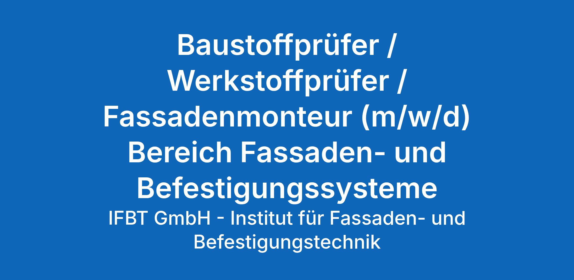 Baustoffprüfer / Werkstoffprüfer / Fassadenmonteur (m/w/d) Bereich Fassaden- und Befestigungssysteme