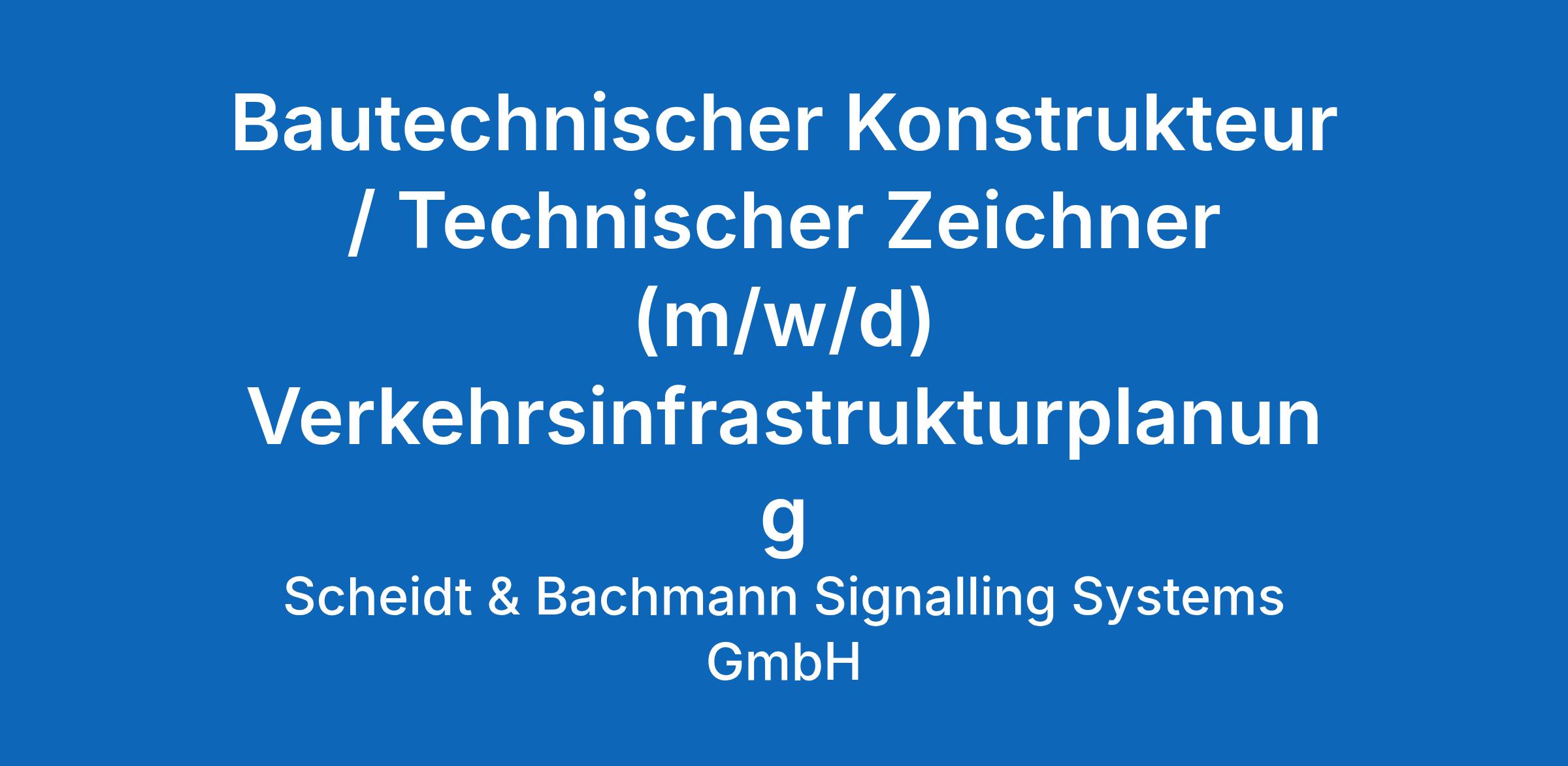Wir suchen dich als Bautechnischer Konstrukteur / Technischer Zeichner (m/w/d) Verkehrsinfrastrukturplanung zur Unterstützung des Planungsteams unserer Tochtergesellschaft Scheidt & Bachmann Signalling Systems GmbH am Standort Berlin.