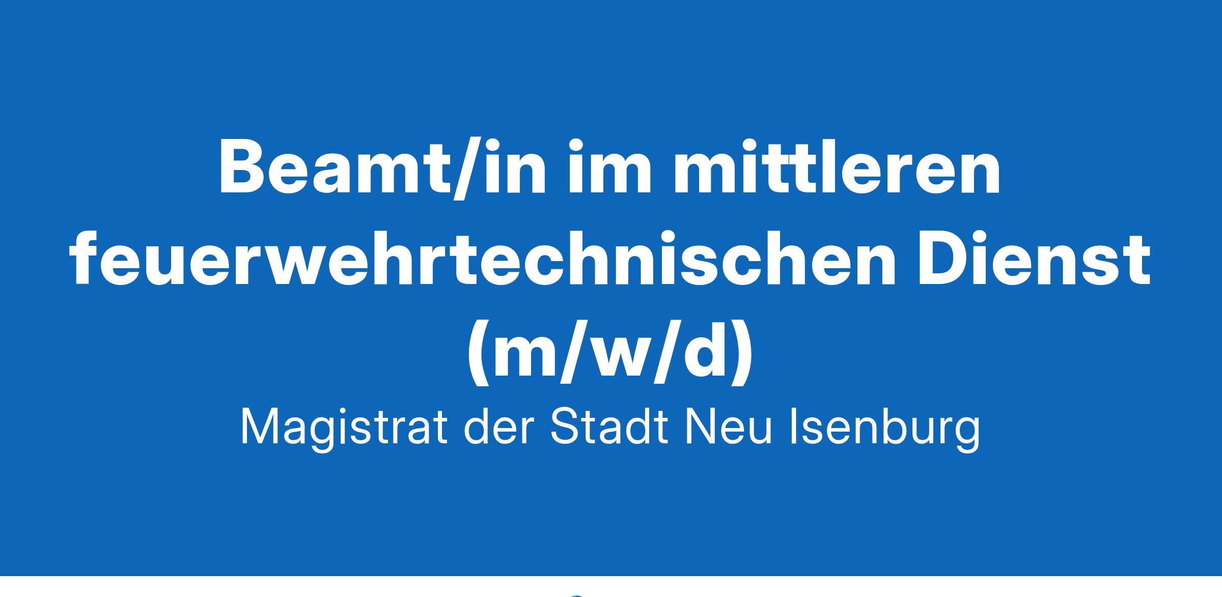 Die Stadt Neu-Isenburg sucht zum nächstmöglichen Zeitpunkt für den Fachbereich Brandschutz eine/n Beamt/in im mittleren