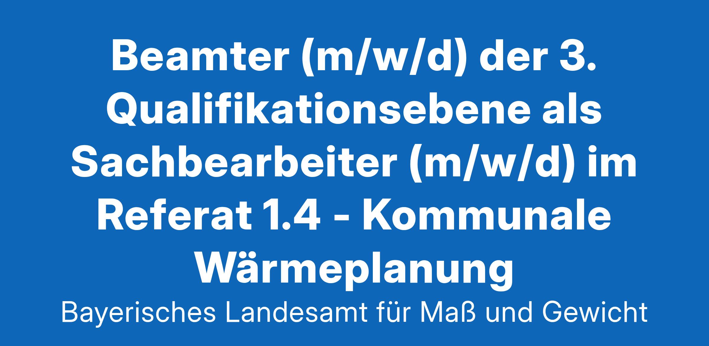Beamter (m/w/d) der 3. Qualifikationsebene als Sachbearbeiter (m/w/d) im Referat 1.4 - Kommunale Wärmeplanung Stellenangebot Stellenbeschreibung Stellenausschreibung
