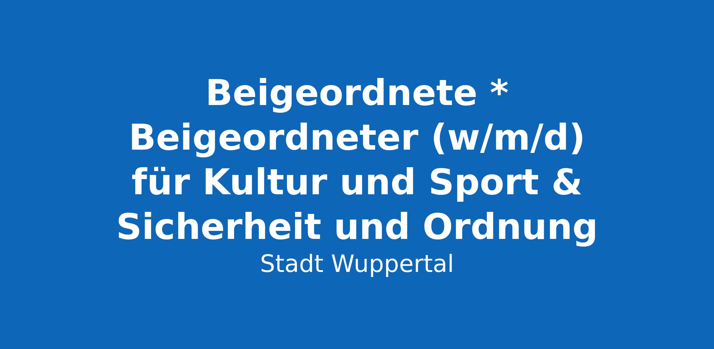 Kultur, Sport und Sicherheit sind zentrale Grundlagen für gesellschaftlichen Zusammenhalt und Lebensqualität. Mit Engagement und Überzeugung eröffnen Sie neue Perspektiven, entwickeln tragfähige Strukturen und stärken verlässliche Netzwerke mit dem Ziel, Wuppertal als attraktiven, sicheren und kulturell geprägten Lebensraum weiterzuentwickeln.