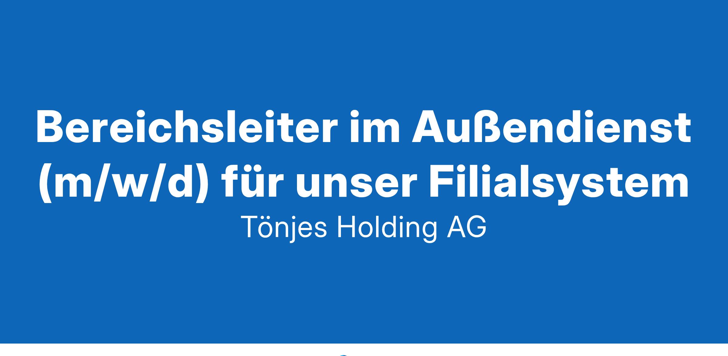 Die Tönjes Holding AG betreibt deutschlandweit über 250 Filialen im Bereich Vertrieb und Herstellung von Kfz-Kennzeichen. Darüber hinaus sind wir mit über 50 Standorten in Deutschland eines der führenden Unternehmen im Dienstleistungsbereich rund um die Fahrzeuganmeldung. Bundesweit beschäftigen wir über 1.000 Mitarbeiter. Für die Betreuung und den weiteren Ausbau unseres Filialsystems im Gebiet Baden-Württemberg und Bayern (ohne Ober- und Unterfranken) suchen wir einen Bereichsleiter im Außendienst (m/w/d) für unser FilialsystemZu Ihren Aufgaben gehören: Akquisition neuer Filialstandorte und die damit verbundene Verhandlungsführung bis zum Abschluss von Mietverträgen Erstkontaktaufnahme und Pflege der zukünftigen und bestehenden Geschäftspartner, Behörden usw. Betreuung der vorhandenen Filialen (34 Filialen), Durchführung verkaufsfördernder Maßnahmen und Umsatz- und Ergebnisoptimierung mit Kostenverantwortung Neukundenakquise und Betreuung des vorhandenen Kundenstamms Technischer Support der genutzten Maschinenanlagen Führung des Filialpersonals Das bringen Sie mit: Eine abgeschlossene kaufmännische Ausbildung Berufserfahrung im beschriebenen oder ähnlichem Aufgabenfeld. Insbesondere im Bereich Filialbetreuung und Mitarbeiterführung Eine hohe Belastbarkeit, Einsatzbereitschaft und Flexibilität Teamfähigkeit, Organisations- und Verhandlungsgeschick Ein sicheres Auftreten sowie soziale Kompetenz und Kommunikationsstärke Reise- und Übernachtungsbereitschaft mit einem Führerschein der Klasse B gute MS Office Kenntnisse Ein Wohnort im Großraum Ulm, Göppingen oder Augsburg ist von Vorteil Wir bieten Ihnen: Einen neutralen Firmenwagen auch zur privaten Nutzung Einen unbefristeten Arbeitsplatz in Vollzeit 30 Tage Urlaub Vermögenswirksame Leistungen Benefits wie Hansefit-Sport und Job-Rad Ein gutes Betriebsklima mit flachen Hierarchien Kontakt:Wir freuen uns auf Ihre aussagekräftige Bewerbung, die Sie uns idealerweise an www.toenjes.ag/bewerbung – Frau Nicole Bockmeyer unter Angabe Ihrer Gehaltsvorstellungen und dem frühestmöglichen Eintrittstermin zusenden. Tönjes Holding AG