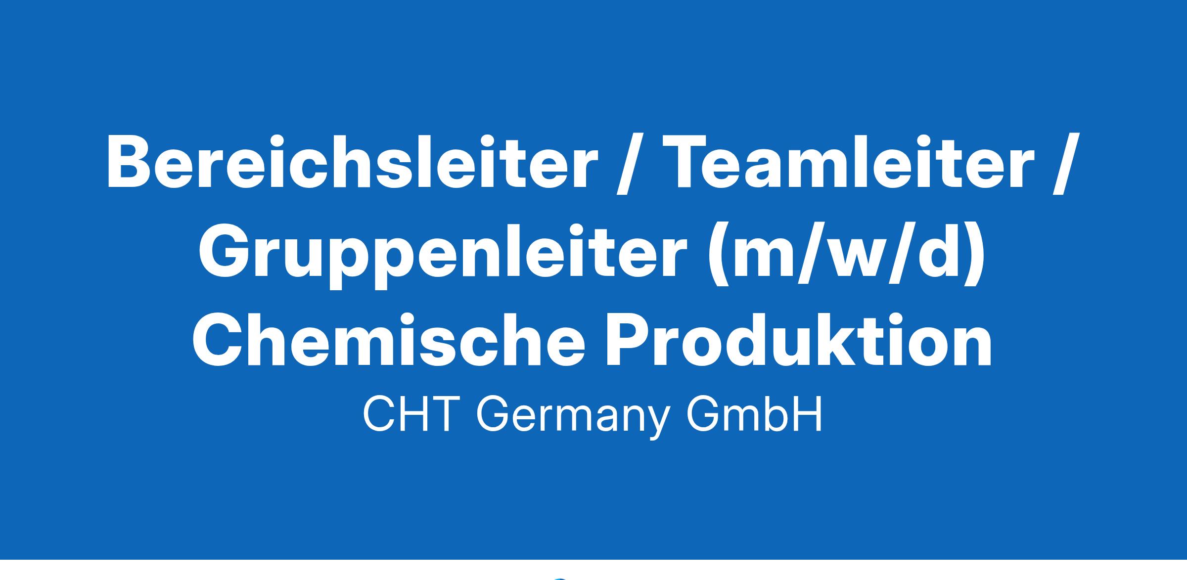 BEREICHSLEITER / TEAMLEITER / GRUPPENLEITER (M/W/D) CHEMISCHE PRODUKTION Standort / Bereich: Oyten / Produktion Vertragsart: Vollzeit; unbefristet Starttermin: zum nächstmöglichen Zeitpunkt IHRE AUFGABEN Verantwortung und Führung des zugewiesenen Produktionsbereichs, inkl. Sicherstellung der Sicherheit, Qualität, Kosten- und Budgetplanung etc. Führung, Motivation und Weiterentwicklung der drei Schichtführer (m/w/d) und deren Schichtteams unter Anwendung des kooperativen Führungsstils im Sinne der CHT-Führungsgrundsätze und Werte Sicherstellung der Ausführung von Produktionsaufträgen lt. Prozessanweisung und Sicherstellung der Produktions- und Qualitätsziele Feinplanung des Produktionsprogramms in enger Abstimmung mit der PPS Bearbeitung von Herstell- und Qualitätsproblemen in Zusammenarbeit mit Verfahrenssicherung und Qualitätskontrolle Initiierung und Durchführung der kontinuierlichen Verbesserung von Prozessen anhand von Lean Management Prinzipien Sicherstellung der Einhaltung von Sauberkeits-, Ordnungs- und Sicherheitsvorgaben unter Anwendung der 5S-Methode Planung und Durchführung von erlaubnis- und freigabescheinpflichtigem Arbeiten in enger Abstimmung mit der Betriebstechnik IHR PROFIL Erfolgreich abgeschlossene Berufsausbildung im chemischen Bereich, z. B. Chemikant (m/w/d) (oder vergleichbar) gepaart mit einer Fortbildung zum Techniker (m/w/d) oder Meister (m/w/d); alternativ abgeschlossenes Studium (z. B. Verfahrenstechnik, Chemieingenieurwesen oder Chemie) Mehrjährige Berufserfahrung als Führungskraft in der (chemischen) Produktion Erfahrungen mit Methoden aus dem Lean Management und Projekt Management sind von Vorteil Selbstständiges Arbeiten gepaart mit Eigeninitiative und Verantwortungsbewusstsein Ausgeprägte Kommunikationsfähigkeiten, Durchsetzungsvermögen und Überzeugungskraft Spaß an der Arbeit im Team und in der Führung von Personal, gepaart mit der Kompetenz, Konflikte kooperativ zu lösen UNSER ANGEBOT Wertschätzung erfahren – durch individuelle Feedbackgespräche sowie Firmenevents, wie Jubiläumsfeiern, Sommerfeste und Weihnachtsfeiern Sicherheit erleben – mit einem attraktiven tarifgebundenen Gehalt, 30 Tage Urlaub, Weihnachtsgeld, Urlaubsgeld und weiteren Tarifbestandteilen Fürsorge empfangen – durch umfangreiche Sozialleistungen wie Pflegezusatzversicherung, Altersvorsorge, Berufsunfähigkeitsversicherung und Krankenzusatzversicherung Freiheiten nutzen – dank Gestaltungsmöglichkeiten des eigenen Arbeitsbereichs, Home-Office, arbeitsfreien Tagen an Heiligabend und Silvester sowie der Teilnahme an Corporate Benefits Individualität stärken – dank vielfältiger Weiterbildungsmöglichkeiten, z. B. Schulungen, Nachwuchskräfteentwicklung, Leadership-Programme sowie E-Learnings Mobilität erleichtern – durch gute Verkehrsanbindung an die A1 & A27, kostenfreie Parkplätze und JobRad SAY YES TO CHT > career.cht.com SMART CHEMISTRY WITH CHARACTER. Wir stehen für "Chemie mit Charakter"! 1953 von Reinhold Beitlich gegründet, hat sich die heutige CHT-Gruppe mehr als 70 Jahre später zu einer weltweit tätigen Unternehmensgruppe entwickelt. Mit dem Fokus auf Spezialchemikalien als Funktionsträger, Hilfs- und Zusatzstoffe für industrielle Prozesse tragen heute fast 2.500 Mitarbeiter in 28 Unternehmen zu unserem Erfolg bei. Zusammen mit den eigenen Vertretungen bietet das Unternehmen Produkte und Dienstleistungen für Kunden in über 120 Ländern auf allen Kontinenten an. #OneWinningTeam: Bei der Zusammenstellung unserer Teams legen wir großen Wert auf die entsprechende Qualifikation jedes Einzelnen. Die individuelle Persönlichkeit und der "Charakter" sind für uns ein wichtiger Bestandteil dieser Qualifikation. Eigeninitiative und die Übernahme von Verantwortung sind elementare Voraussetzungen für zufriedene Kunden, konstruktive Geschäftsbeziehungen und unseren nachhaltigen, langfristigen Erfolg. Durch einen wertorientierten und kooperativen Führungsstil schaffen wir eine Atmosphäre, die Kreativität, Leistung, Zufriedenheit und persönliche Entwicklung fördert. Nur so können Produkte von besonderer Qualität und "Chemie mit Charakter" entstehen. SAGEN SIE YES ZU CHT. Sie möchten in einem international tätigen Unternehmen den Wandel gestalten und für Veränderungen sorgen? Dann senden Sie uns Ihre aussagekräftigen Bewerbungsunterlagen bitte ausschließlich über unser Bewerbungssystem. Sollten Sie noch Fragen haben, rufen Sie uns gerne an. Ihr HR-Kontakt: Frau Lina Bremer Telefon +49 4207 603 129