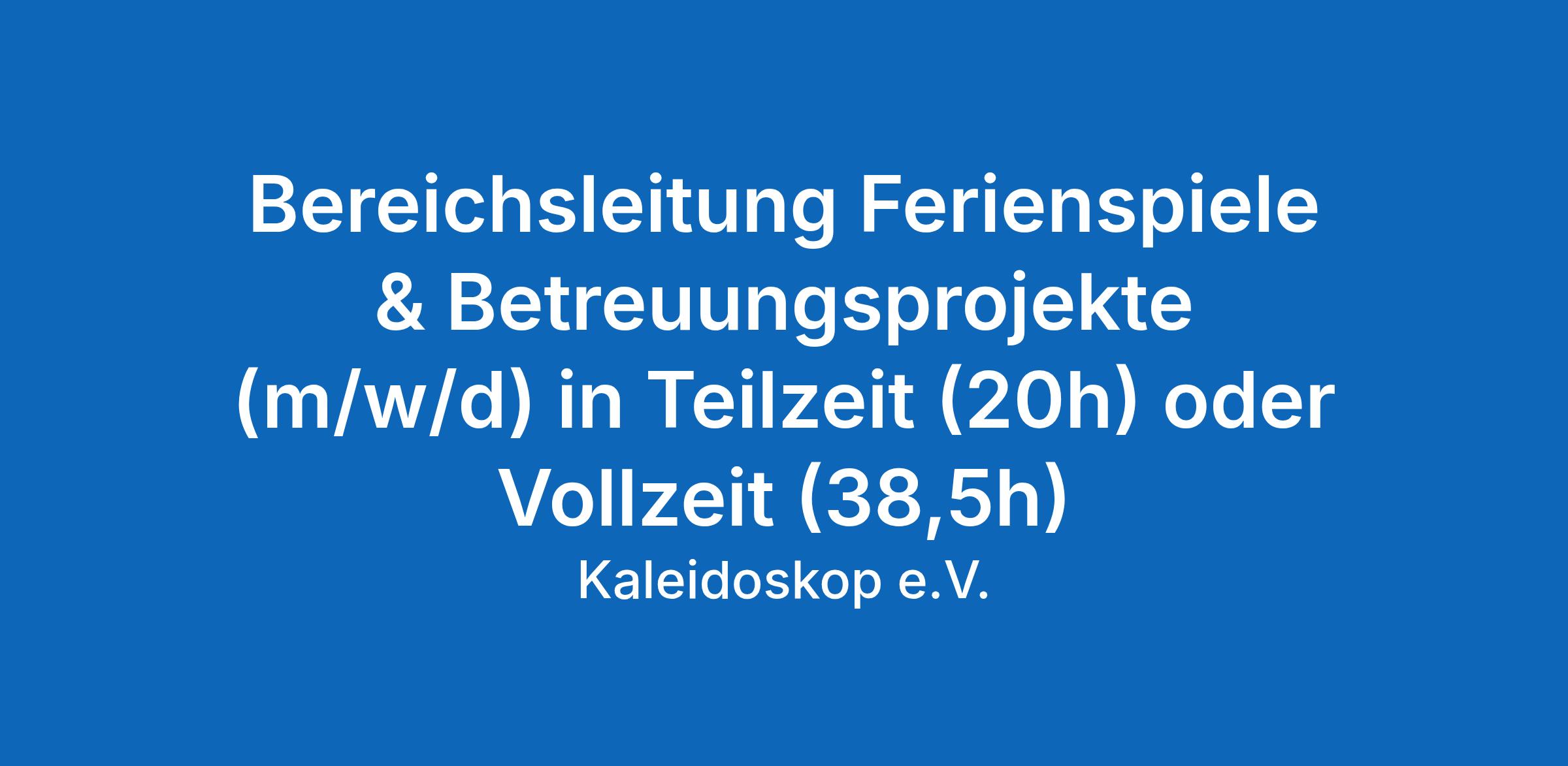 Bereichsleitung „Ferienspiele & Betreuungsprojekte“ (m/w/d) in Teilzeit (20h) oder Vollzeit (38,5h)