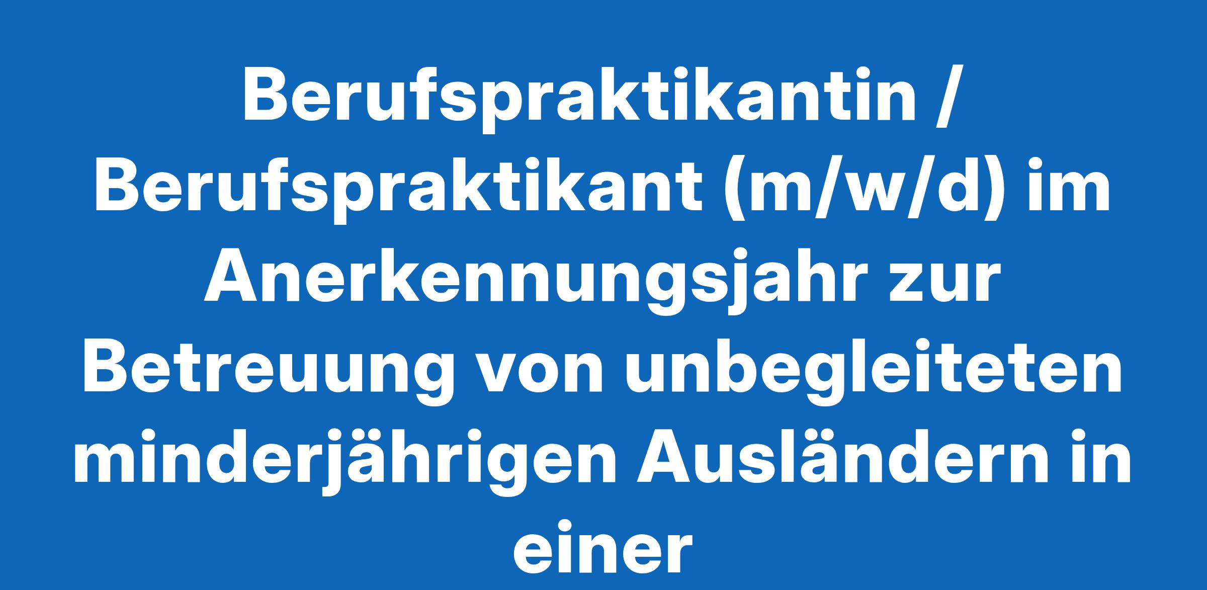 Berufspraktikantin / Berufspraktikant (m/w/d) im Anerkennungsjahr zur Betreuung von unbegleiteten minderjährigen Ausländern in einer Erstaufnahmeeinrichtung