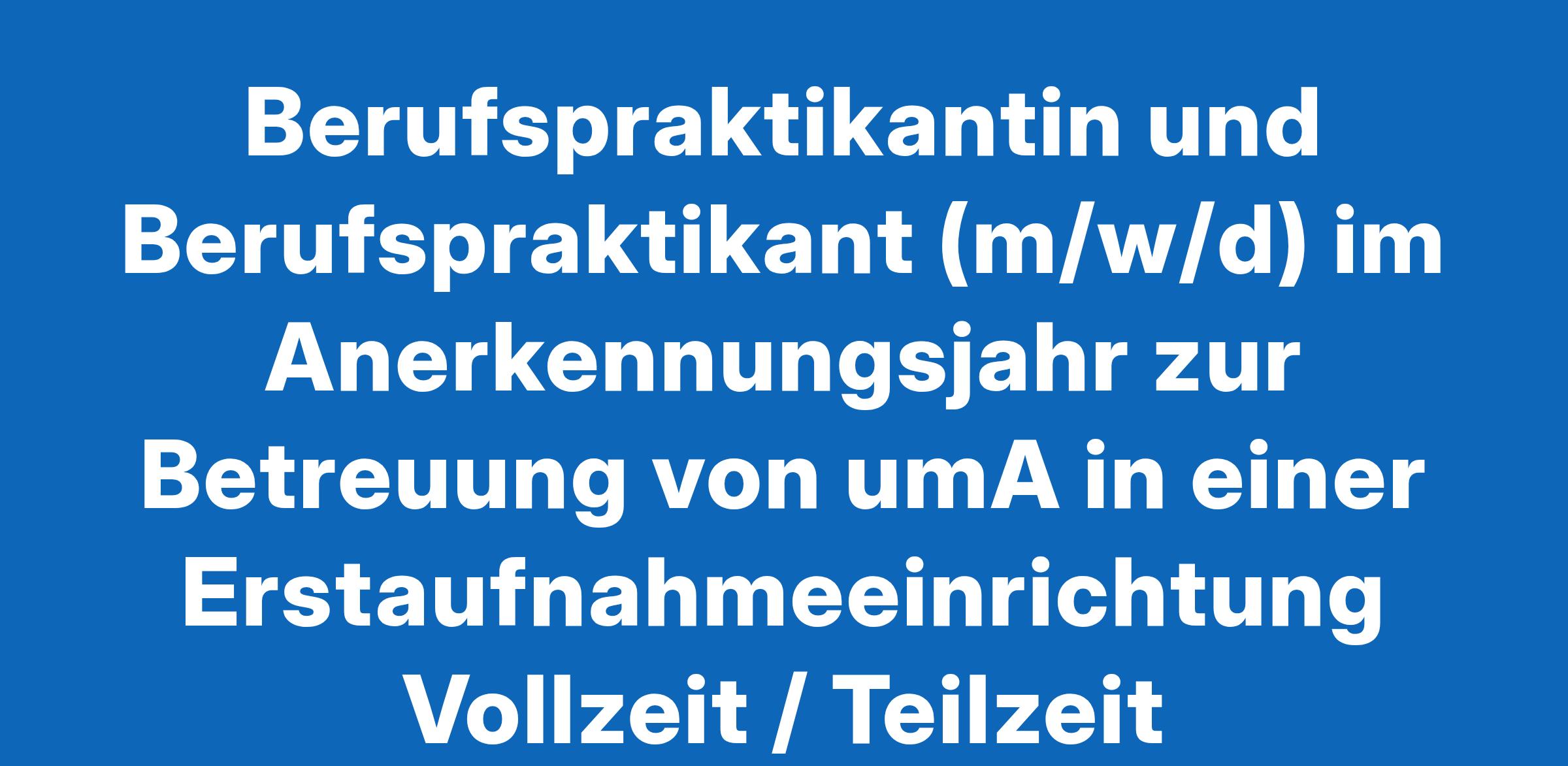 Berufspraktikantin und Berufspraktikant (m/w/d) im Anerkennungsjahr zur Betreuung von umA in einer Erstaufnahmeeinrichtung Vollzeit / Teilzeit