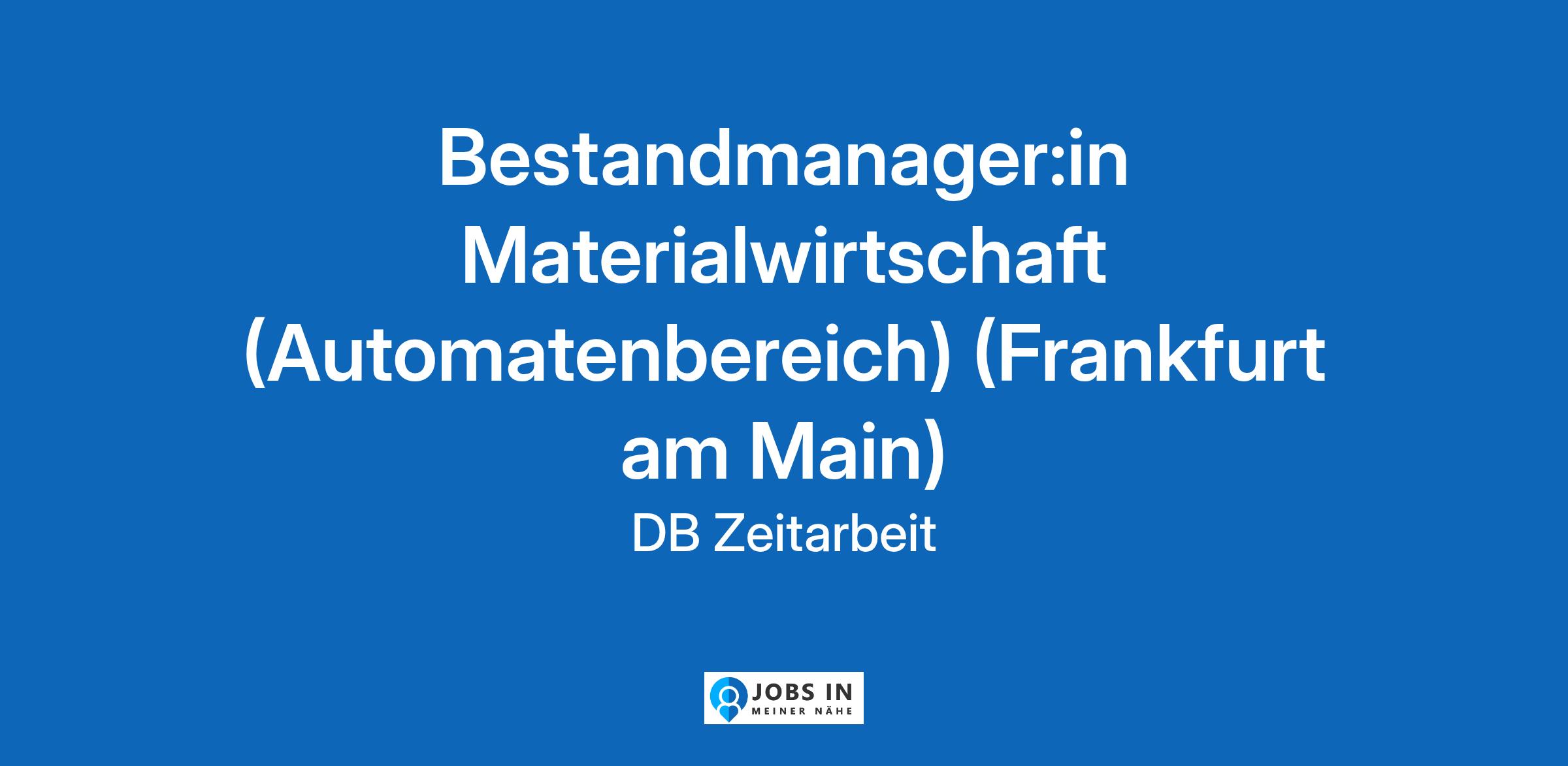 Zum nchstmglichen Zeitpunkt suchen wir dich als Betriebswirt:in / Ingenieur:in als Spezialist:in Materialwirtschaft (Automatenbereich) (w/m/d) fr die DB Zeitarbeit GmbH am Standort Frankfurt am Main.