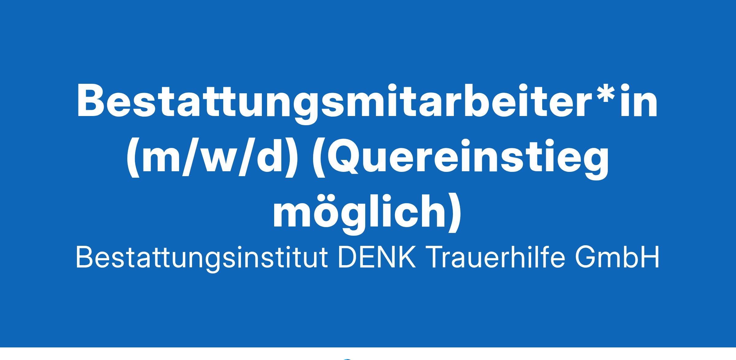Bestattungsmitarbeiter*in (m/w/d) (Quereinstieg möglich) Die Bestattungsinstitut DENK TrauerHilfe GmbH ist das führende Bestattungsunternehmen in Bayern. Mit über 250 festangestellten Mitarbeitenden bilden wir ein multifunktionales, wirtschaftlich erfolgreiches und modernes Unternehmen, das seit 180 Jahren in der Verantwortung seines Firmennamens steht: Wir bieten im Trauerfall Angehörigen und Familien unsere Hilfe an und DENKen als Menschen für Menschen. Dabei stehen wir für verbindliche Qualitätsstandards und verstehen uns als vertrauensvoller und transparenter Arbeitgeber. Sie haben Erfahrung in einem handwerklichen oder pflegerischen Beruf und möchten Ihre Fähigkeiten in einer sinnstiftenden und vielseitigen Tätigkeit einsetzen? Bei der TrauerHilfe DENK erwartet Sie eine abwechslungsreiche Tätigkeit, die sowohl Ihre praktischen Fertigkeiten als auch Ihre Empathie und Ihr Verantwortungsbewusstsein fordert. Ihr Aufgabengebiet umfasst alle bestattungstypischen Tätigkeiten im Fahrdienst und auf dem Friedhof. Im Einzelnen bedeutet das eine vielseitige, sinnstiftende und flexible Tätigkeit an der frischen Luft – sowohl auf dem Friedhof als auch unterwegs. Dabei arbeiten Sie stets im Team und leisten einen wichtigen gesellschaftlichen Beitrag. Das bieten wir Benefit-Pass: monatlicher € 50-Wertgutschein zusätzlich zum Gehalt nach bestandener Probezeit JobRad & IT-Leasing Betriebliche Altersvorsorge Freiwillige Sozialleistungen wie Urlaubs- und Weihnachtsgeld Eine umfassende, individuelle und systematische Einarbeitung in einem familiären und kooperativen Team Eine sinnstiftende, vielseitige und eigenverantwortliche Tätigkeit Krisensicherer Arbeitsplatz in einem etablierten Bestattungsinstitut So unterstützen Sie uns Respektvolle Versorgung der verstorbenen Person Stilvolle Überführung mit dem Bestattungskraftwagen Fachgerechtes Öffnen und Schließen verschiedener Grabarten Individuelle Vorbereitung der Aussegnungshalle und der Trauerfeier: Sie sorgen dafür, dass der Abschied ein würdevoller, unvergesslicher Moment wird. Verantwortung übernehmen bei der Trauerfeier: Als Beerdigungsleitung und -koordination sind Sie die verlässliche Ansprechperson für Trauernde. Das bringen Sie mit Führerschein der Klasse B (idealerweise C1E) Technisches Verständnis Handwerkliches Geschick Teamfähigkeit und Zuverlässigkeit Sensible Umgangsformen AUF IHRE AUSSAGEKRÄFTIGE BEWERBUNG FREUT SICH: Emma Leppin Tel.: 089 - 620 105 86 jobs@trauerhilfe-denk.de Personalbetreuung Hohenlindener Str. 10d 81677 München