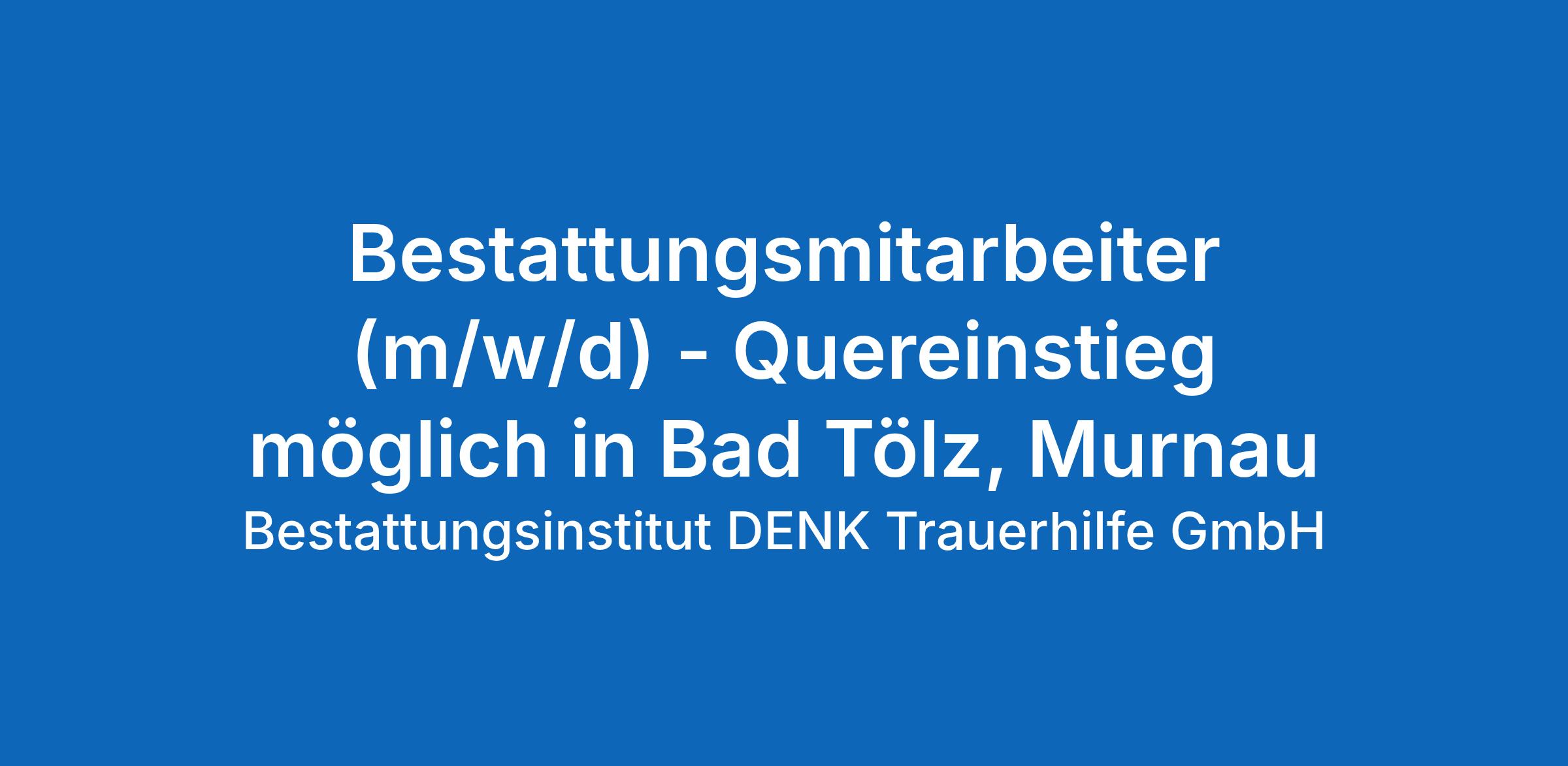 Bestattungsmitarbeiter (m/w/d) - Quereinstieg möglich in Bad Tölz, Murnau