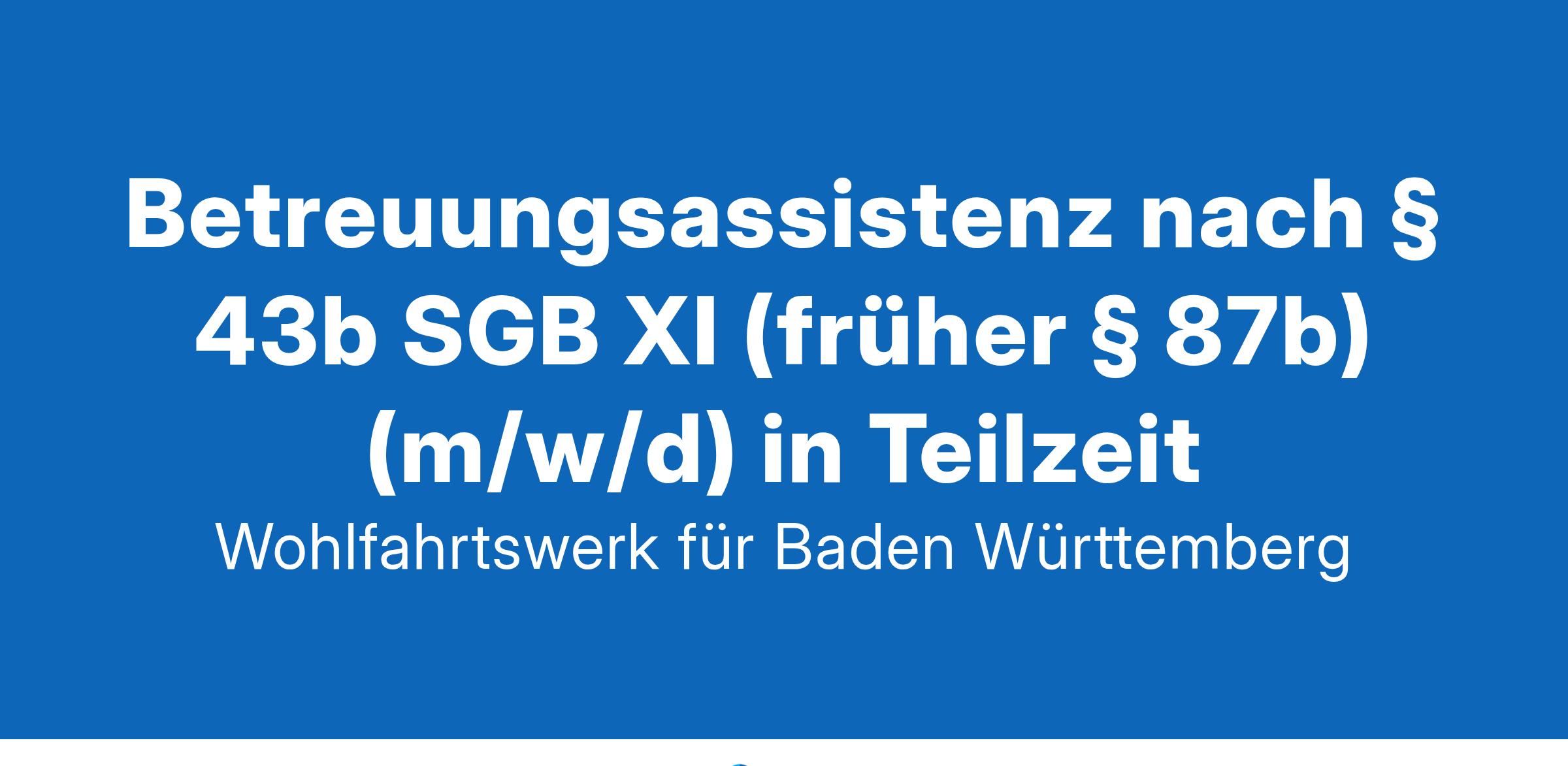 Betreuungsassistenz nach § 43b SGB XI (früher § 87b) (m/w/d) in TeilzeitStundenumfang: TeilzeitEintrittsdatum: ab sofortOrt: Altenburgheim , StuttgartWir suchen ab sofort eine Betreuungsassistenz nach § 43b SGB XI (früher § 87b) (m/w/d) in Teilzeit.Wir bieten Ihnen:Vielseitige und verantwortungsvolle Tätigkeit und individuelle Entwicklungsmöglichkeiten