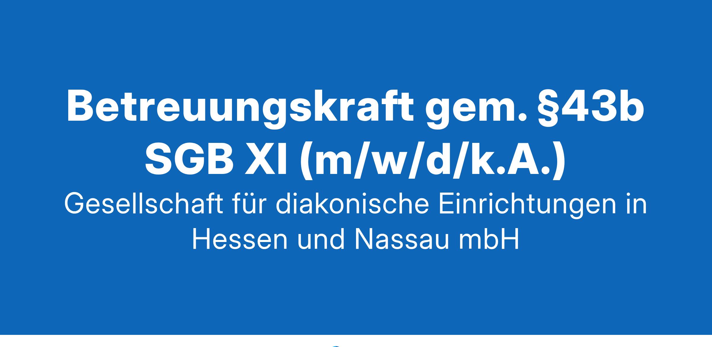 Betreuungskraft gem. §43b SGB XI (m/w/d/k.A.)Seit bald 50 Jahren ist die Gesellschaft für diakonische Einrichtungen für Seniorinnen und Senioren im Einsatz. Unser Angebot umfasst stationäre und ambulante Pflege und Betreuung, Service Wohnen, Tagespflege sowie einen ambulanten Hospizdienst an insgesamt 25 Standorten mit rund 2.000 Mitarbeitenden.