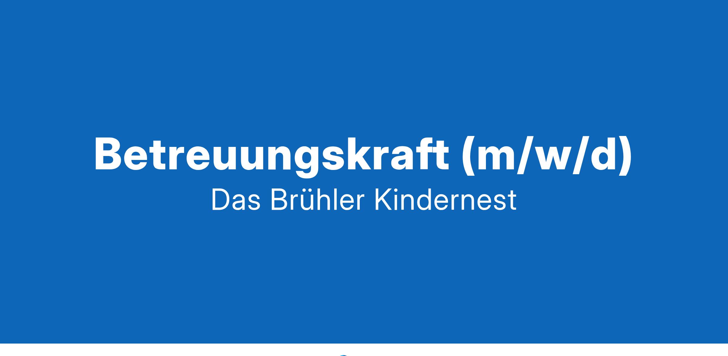 Betreuungskraft (m/w/d) Zur Verstärkung unseres Teams suchen wir für unsere Spielgruppen (ohne Eltern) eine liebevolle Betreuungskraft (m/w/d). In unserem Minikindergarten begleiten Sie Kinder im Alter von 1 bis 3 Jahren spielerisch durch den Vormittag. Arbeitszeiten: Drei Vormittage pro Woche, jeweils von 8.30 Uhr bis 12 Uhr. Kontakt: Telefon 0160-3793976, Ansprechpartner Conny Wilbert. Mehr Infos: www.bruehler-kindernest.de
