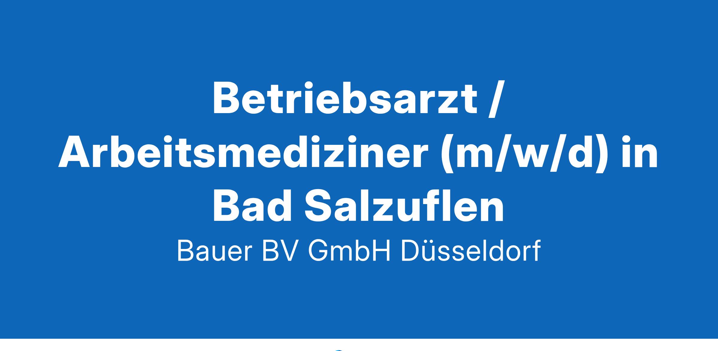 Anstellungsart(en): VollzeitIhr neuer Arbeitsplatz:Für den arbeitsmedizinischen Dienst einer großen deutschen Berufsgenossenschaft suchen wir bundesweit Fachärzte (m/w/d) sowie Assistenzärzte (m/w/d) für Arbeitsmedizin.Aufgabenspektrum:Rein präventive TätigkeitBetreuung und Beratung der Mitgliedsbetriebe zum Arbeits- und GesundheitsschutzTätigkeit im arbeitsmedizinischen Zentrum und teilweise im AußendienstMitwirkung bei der beruflichen und medizinischen RehabilitationIhre Vorteile:Verantwortungsvoller AufgabenbereichBreites AufgabenspektrumKollegiales Team und interdisziplinärer AustauschFamilienfreundliche Arbeitszeiten ohne DiensteAttraktive VergütungUnbefristete FestanstellungIhr Profil:Facharzt (m/w/d) für Arbeitsmedizin bzw.Arzt (m/w/d) in Weiterbildung ArbeitsmedizinDeutsche Approbation und Sprachlevel C1mind. 24 Monate absolvierte Weiterbildungszeit in der PatientenversorgungTeamfähigkeit und EngagementPKW-FührerscheinIhr Ansprechpartner:Bauer B+V Personalberatung
